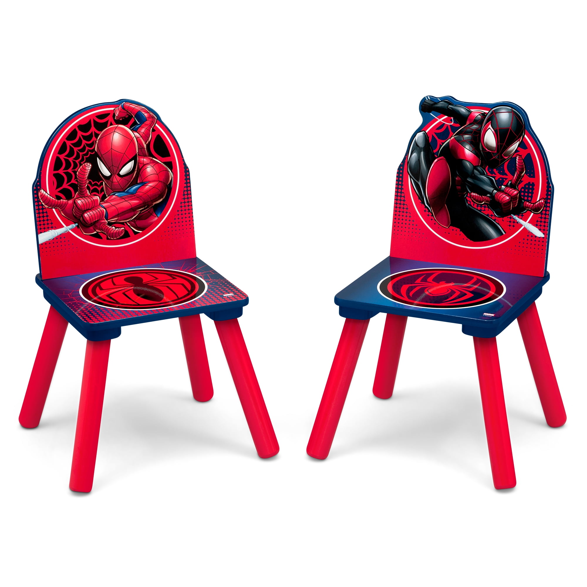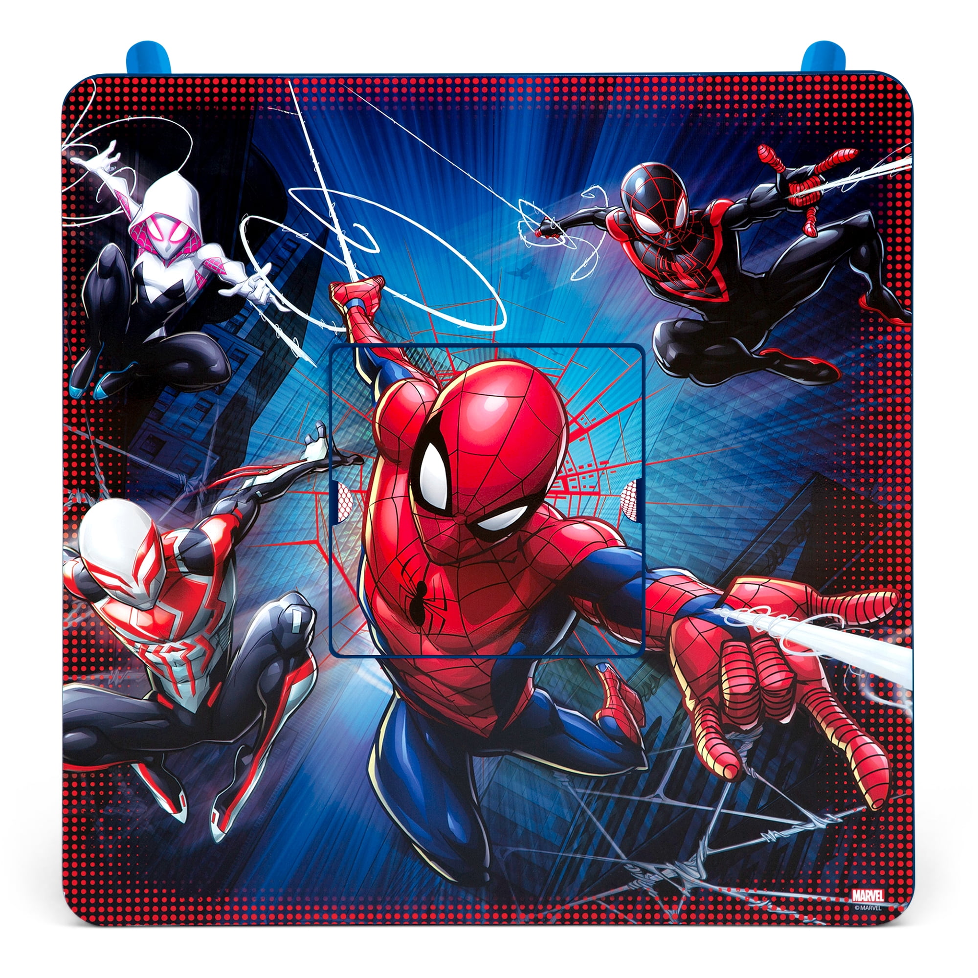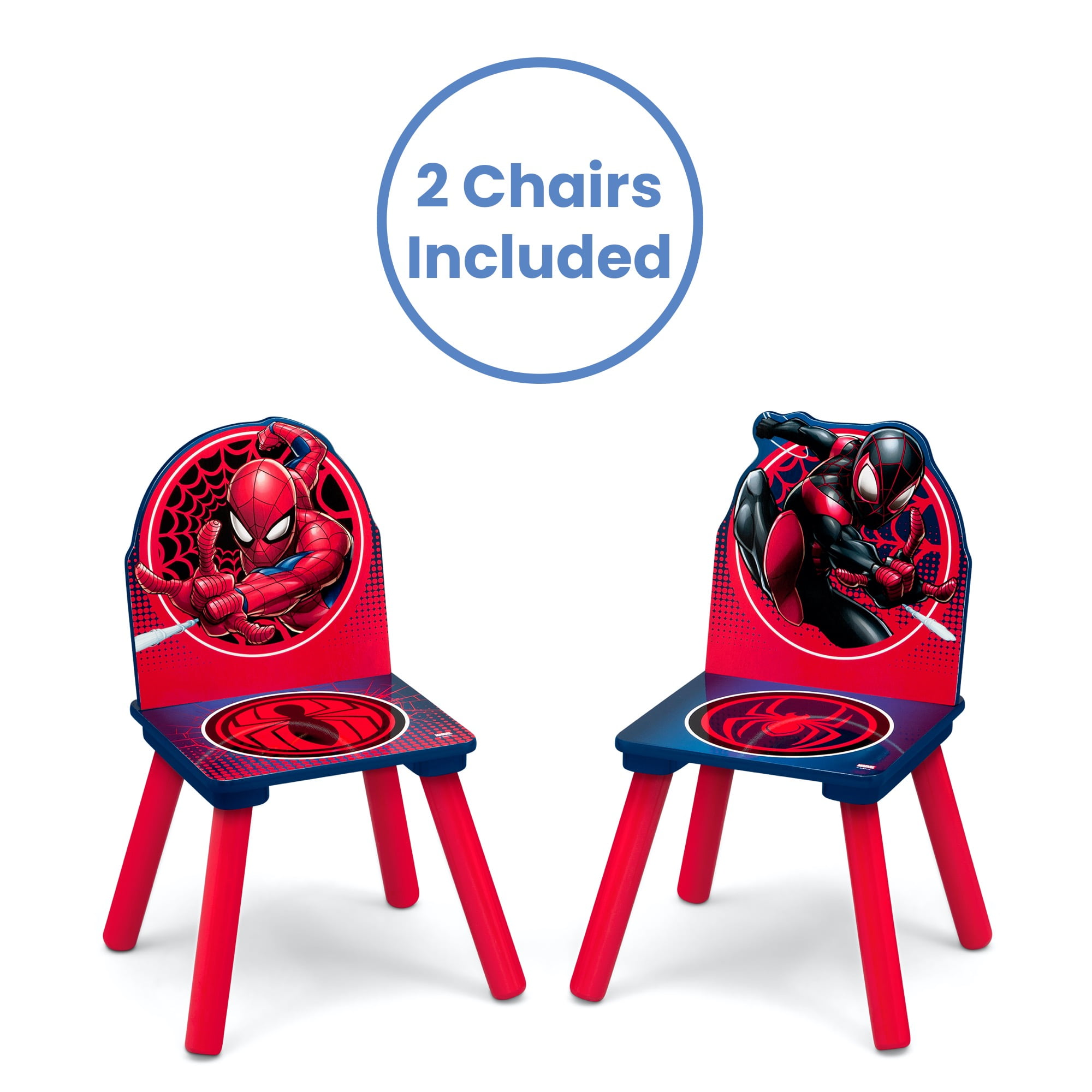 Your friendly, neighborhood web-slinging hero makes everyday activities more fun with this Spider-Man Kids Table and Chair Set with Storage by Delta Children. Featuring colorful graphics of Spider-Man, Miles Morales and Spider Gwen, this table and chair set will be the real hero of your playroom. Designed at the perfect kid-sized height, this table and two chair set is the ideal option for snack time, playtime or homework. Plus, a built-in storage compartment at the center of the table provides the perfect space to keep art supplies. About Spider-Man: After being bitten by a radioactive spider, Peter Parker gained incredible special powers. Along with his newfound abilities, Peter used his scientific knowledge to construct tools, a suit and a new alter ego, Spider-Man. Using his superpowers to protect the public from evildoers, he knows that with great power comes great responsibility! Bring the action-packed fun of Spider-Man to your child’s bedroom or playroom with Delta Children’s Spider-Man Collection.