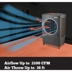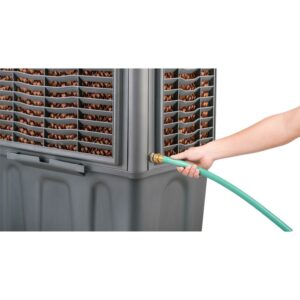 – [BEST FOR OUTDOOR COOLING – NO MIST] Built for more demanding applications, this 2100CFM 115 Volts Swamp Cooler will withstand unpredictable weather, rain or shine. Feel the Power of Evaporation – that crisp cool air – without drenching your patio and furniture with water!