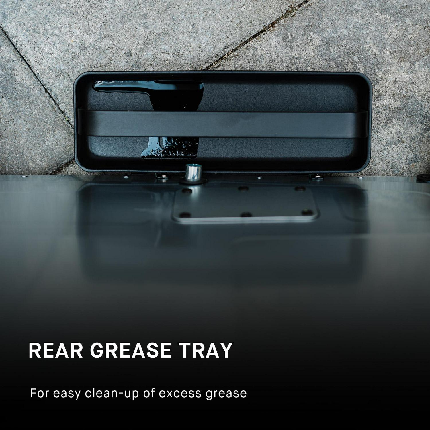 - Removable rear grease tray to easily clear grease for an easy cleanup process