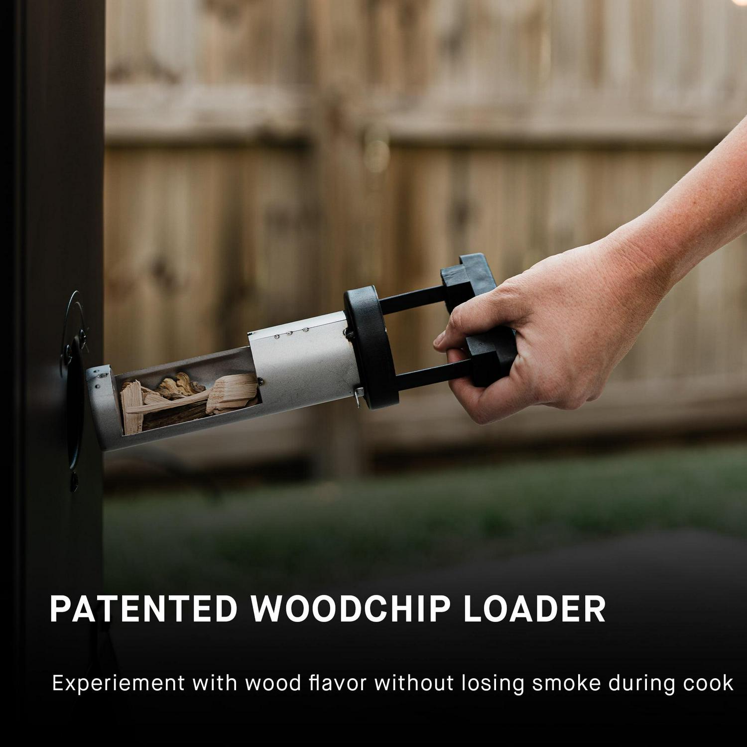 – Patented side woodchip loader to continually add wood-fired smoked flavor without having to open the smoker door to keep smoke in during the cooking process, resulting in enhanced low and slow cooked dishes