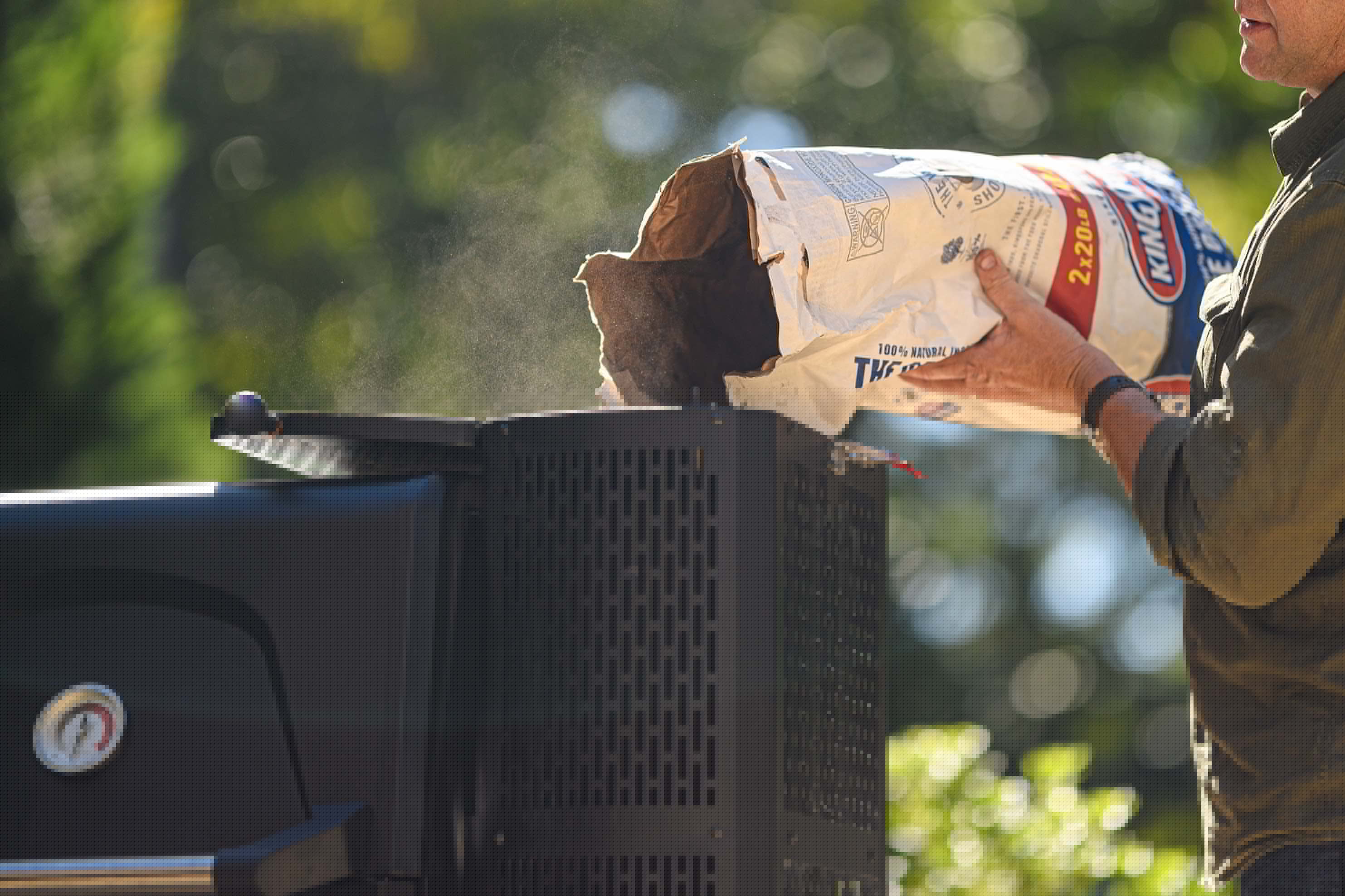 – Gravity Fed hopper holds 10 pounds of lump charcoal or 16 pounds of briquettes for 12-15 hours of use