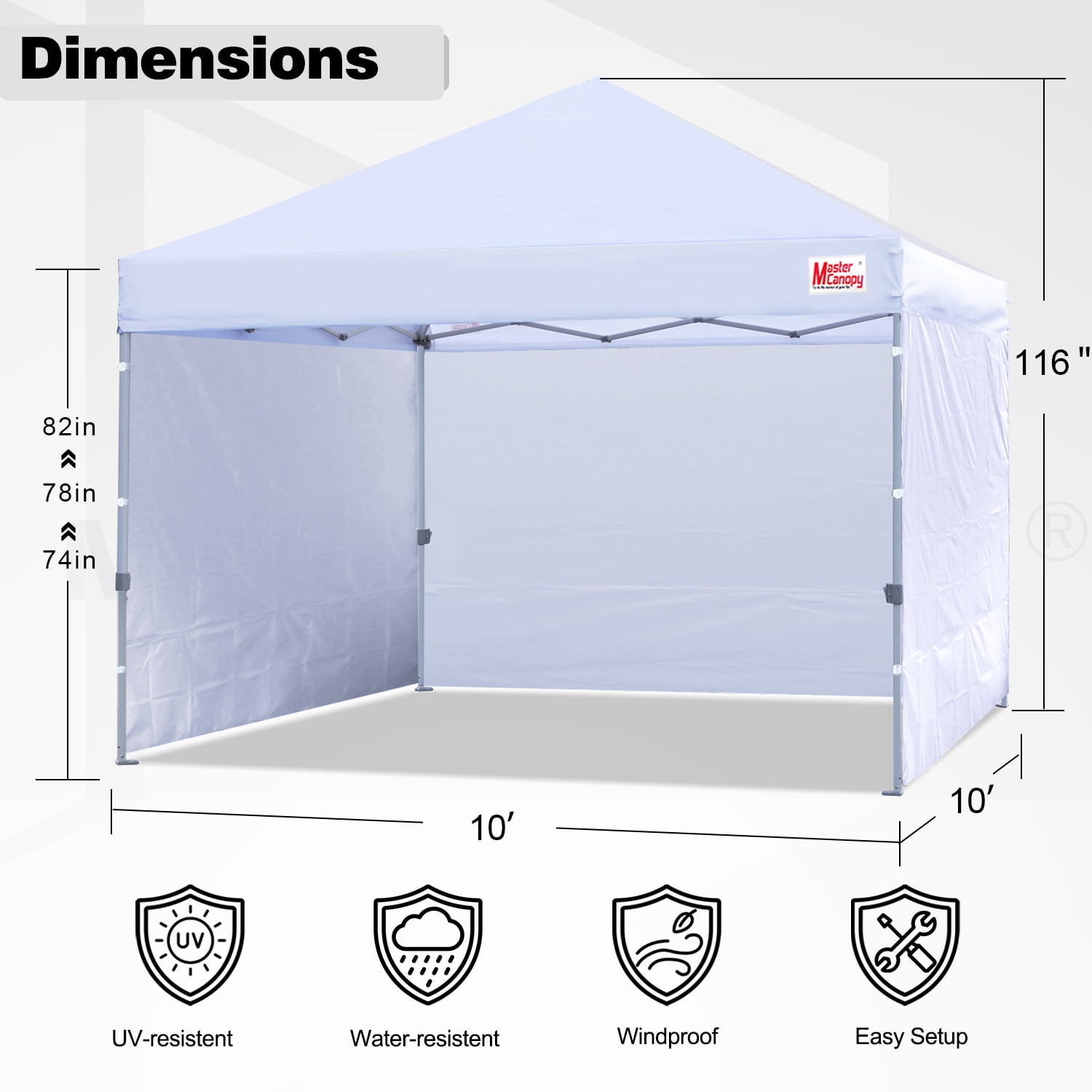 MASTERCANOPY 10′ x 10′ Pop-up Canopy Tent Commercial Instant Shelter with 4 Sidewalls, White