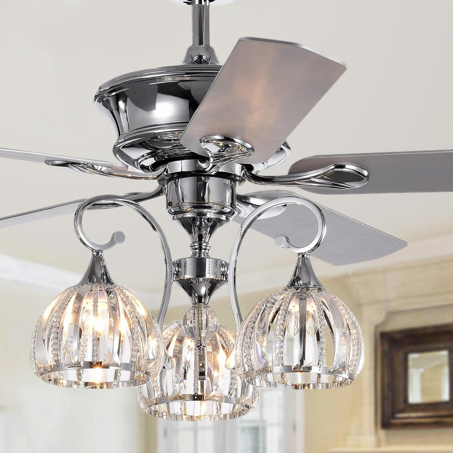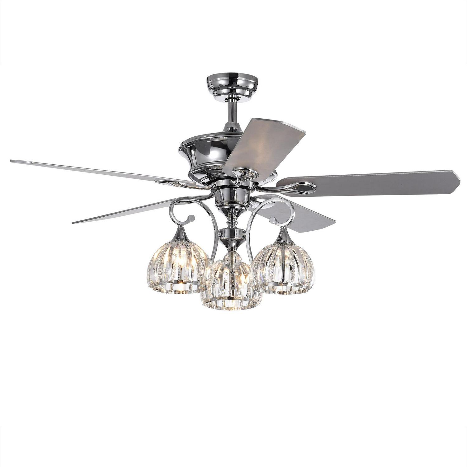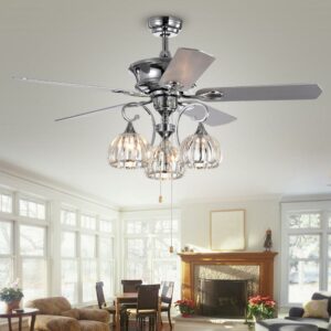 Mavyn 5-Blade 52-Inch Chrome Ceiling Fan with 3-Light Crystal Chandelier