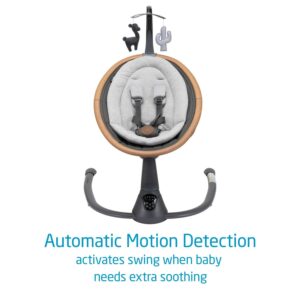 Swing smartly in style As a (new) parent, we know you can never get enough of holding your little one. But with everything you need to do around the house, sometimes it s nice to have both hands free. Lends a helping hand Imagine a smart set of extra arms to comfort your baby during those moments. Maxi-Cosi Cassia a stylish and smart swing for babies from birth to 20 pounds was developed for moments like these to lend a helping hand. Provides extra comfort when needed This stylish swing has the beauty and the brains just like you it instinctively knows when and how to rock your baby when they re fussy, thanks to the automatic motion detector. The Cassia simply activates the swing when it recognizes your baby needs some extra comfort. Lighter than the family cat Its 360 rotation helps you maintain eye contact with your baby because we know you can never take your eyes off of them. From the living room to the home office and back, you can easily take Cassia with you. Not only does it weigh about 10 pounds less than the family cat it also has a space-saving frame. And a stylish one at that. Suits your style Its luxurious finishing and high-quality fabrics ensure the design matches any interior, and it comes with an easy to remove and machine-washable cover. Finally, Cassia comes with two toys to give your baby something to look at, two recline positions and a soft and cozy newborn inlay to provide you and your baby with the utmost comfort. Maxi-Cosi Cassia swing smartly in style.