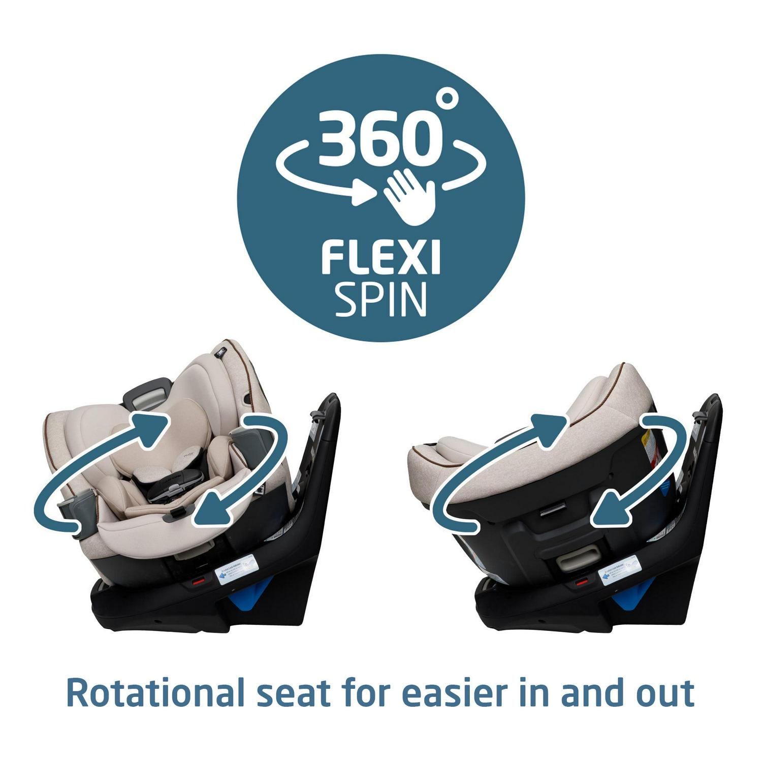 – INTRODUCING EMME360TM WITH 360° FLEXISPIN Getting your child in and out of the car is easier than ever with our 360° FlexiSpin rotational seat design. Our 360° FlexiSpin rotational technology allows you to swivel the car seat so you can easily remove your child from the car with less back strain.