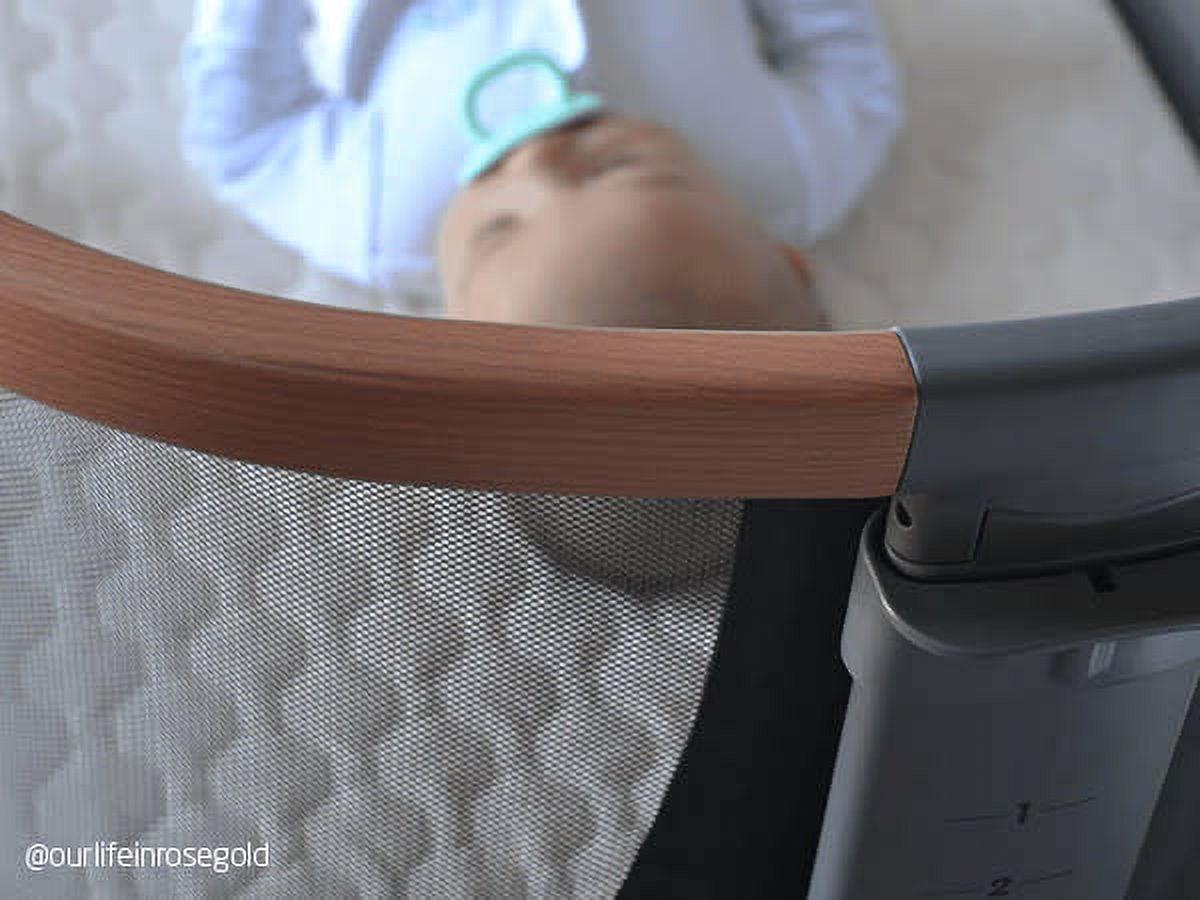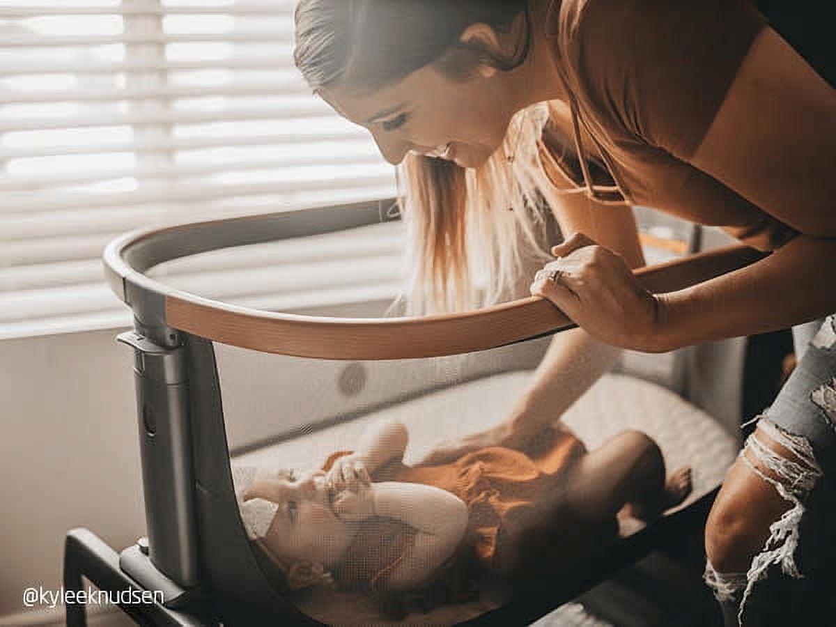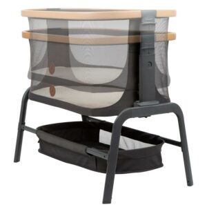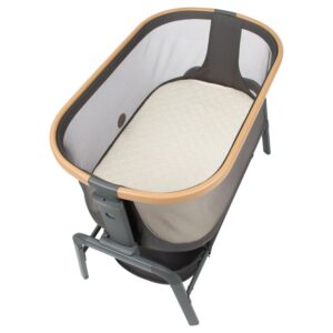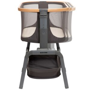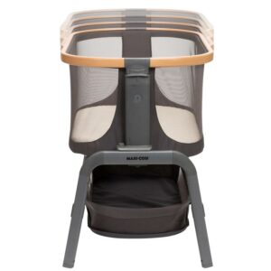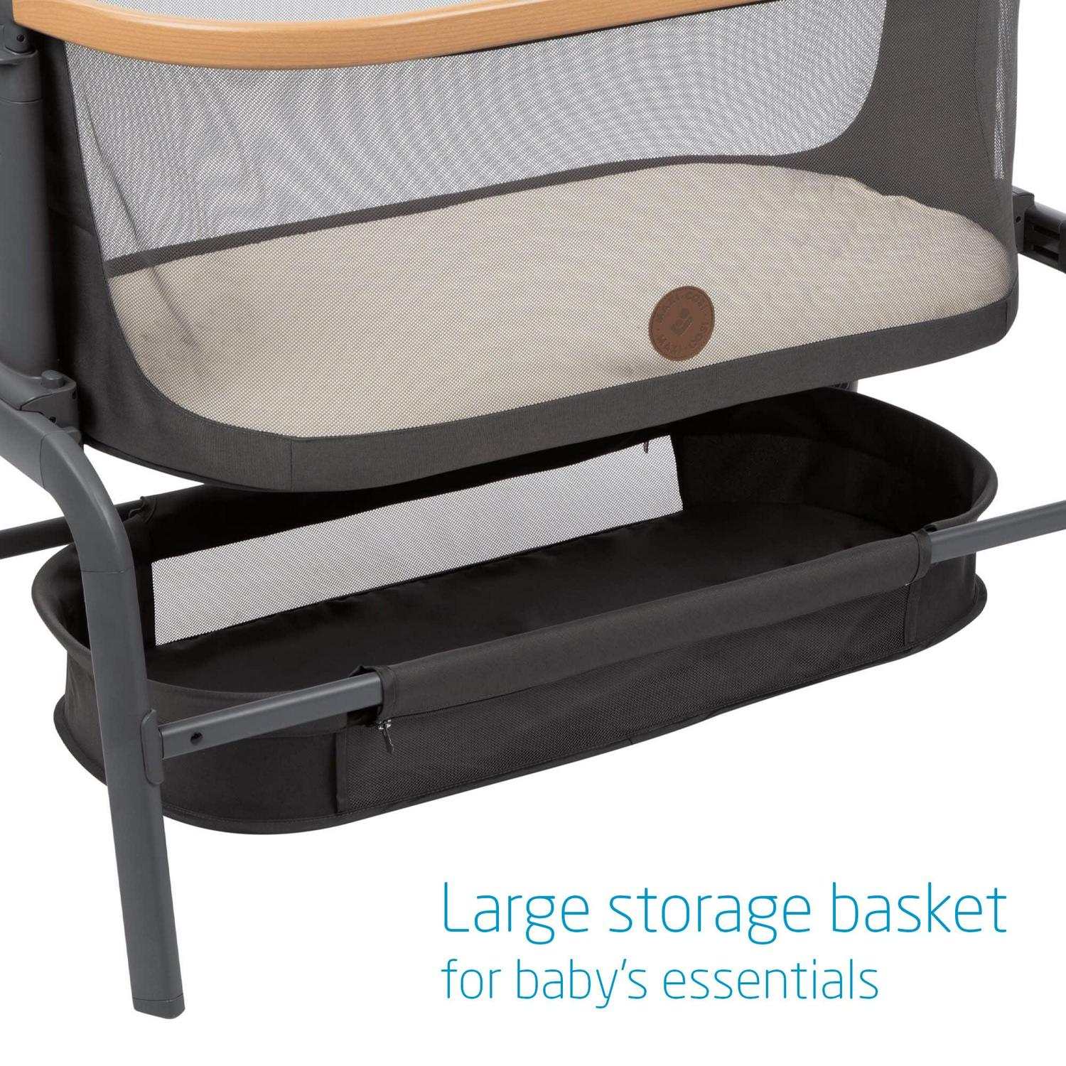 Getting your little one to fall asleep can be tricky. But with the Maxi-Cosi Iora Baby Bedside Bassinet, your little one can rest comfortably at home or wherever you travel all within an arm s reach. Rest time starts with the supportive mattress that offers just the right amount of comfort for nighttime sleep or daytime naps. Then there s the breathable mesh siding that lets the air flow through and gives you a quick glimpse of your little one. Versatility s important, too. That s all thanks to the Iora s four different height positions that to give you a customized fit. Not only does the Iora bassinet adjust up and down, but side to side as well. For those moments in the middle of the night when your baby wakes up crying, you can easily glide the bedside bassinet closer to the bed to give comfort and care.Let s not forget the Iora s sleek and stylish design. It s sophisticated colors and material finishes blend in beautifully with your modern-day décor.When you re visiting a friend s house or staying at grandma s, it s nice to be able to quickly change a diaper and easily access all those baby essentials, which is why the Iora makes for a great travel bassinet. That s where the extra-large storage basket located underneath comes in handy. Whether you re traveling or moving your little one into the nursery, wherever you want to go, the Iora Bedside Bassinet easily folds up and stores in its own travel bag. With Maxi-Cosi Iora, at the end of the day it s all about comfort.