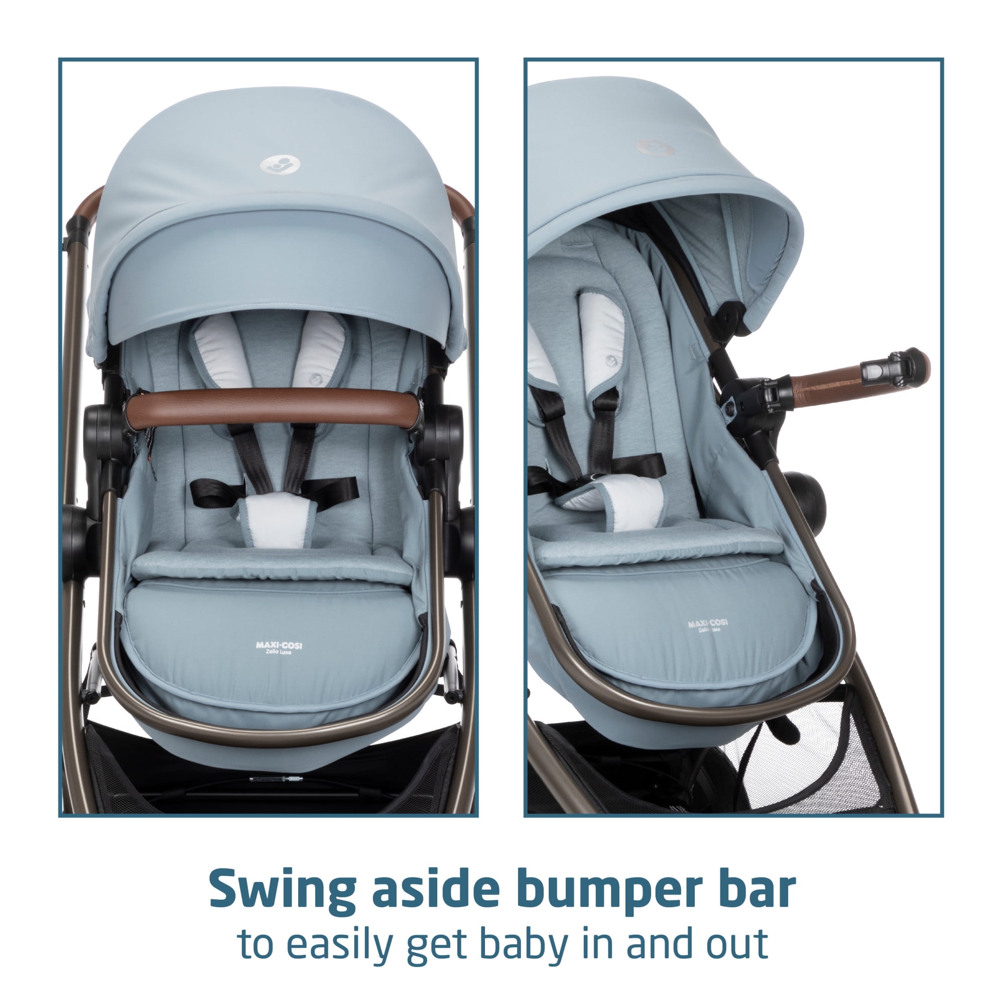 Choose between 5 modes of use: parent-facing car seat caddy, reversible carriage, and reversible stroller Soft, textured stroller fabrics provide a premium look for you, and soothing comfort for baby Extendable MaxShade canopy on stroller for sun protection with UPF 50 and a mesh peek-a-boo window Customize the stroller handle to your preferred height for a more comfortable push Rear-facing Mico Luxe Infant car seat for babies from 4–30 lbs. and up to 32” Infant car seat shell designed with ClimaFlow™ technology, providing added ventilation to help keep baby cooler Bumper bar swings to the side to easily get baby in and out of the stroller seat Extra inlay in car seat for added comfort and support; machine washable for quick cleaning