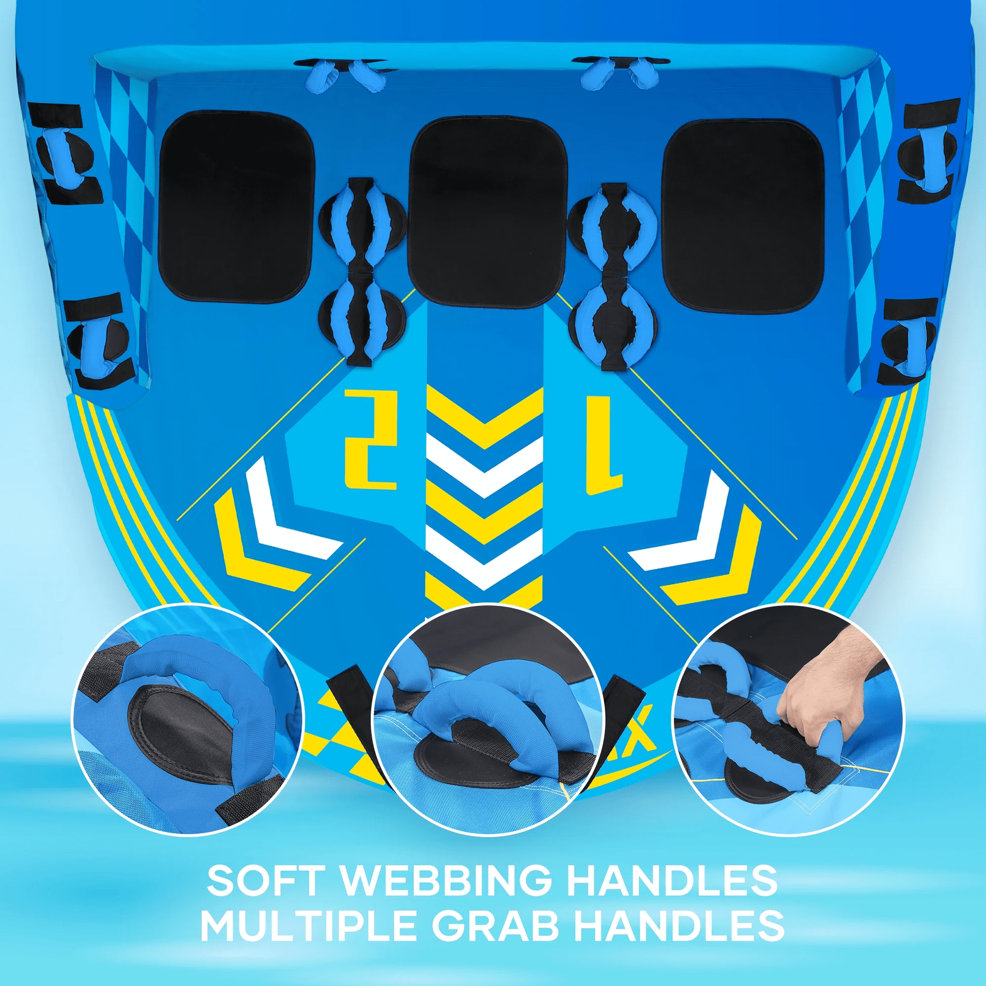 Maxkare 3 Person Inflatable Towable Tube for Boating, Waterskiing with EVA Foam Seat Pads-Blue