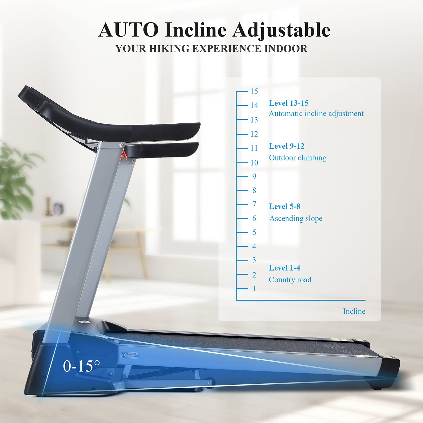 MaxKare 3HP Folding Treadmill with 15Levels Auto Incline, 0.6-10 MHP, 15 program,Portable Foldable Treadmill for Home Use, 300 LBS