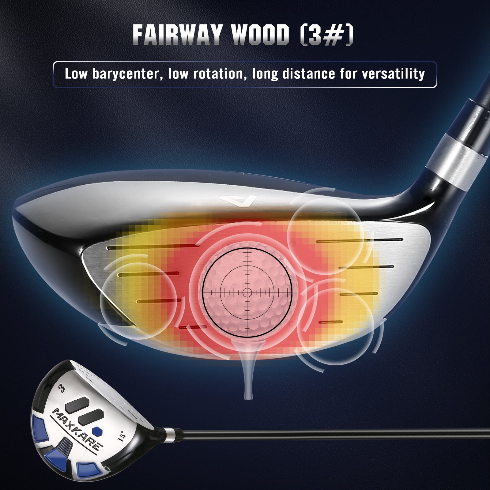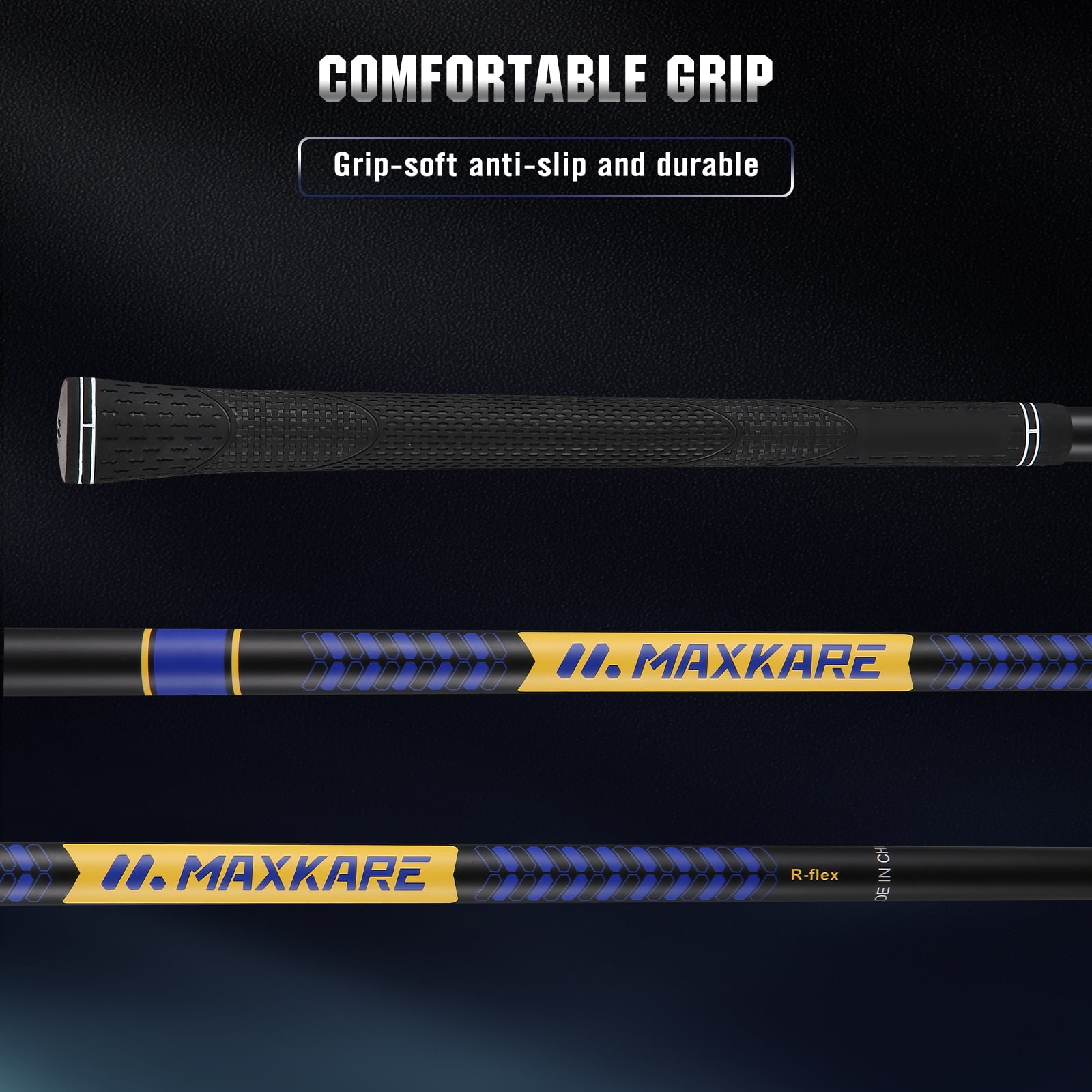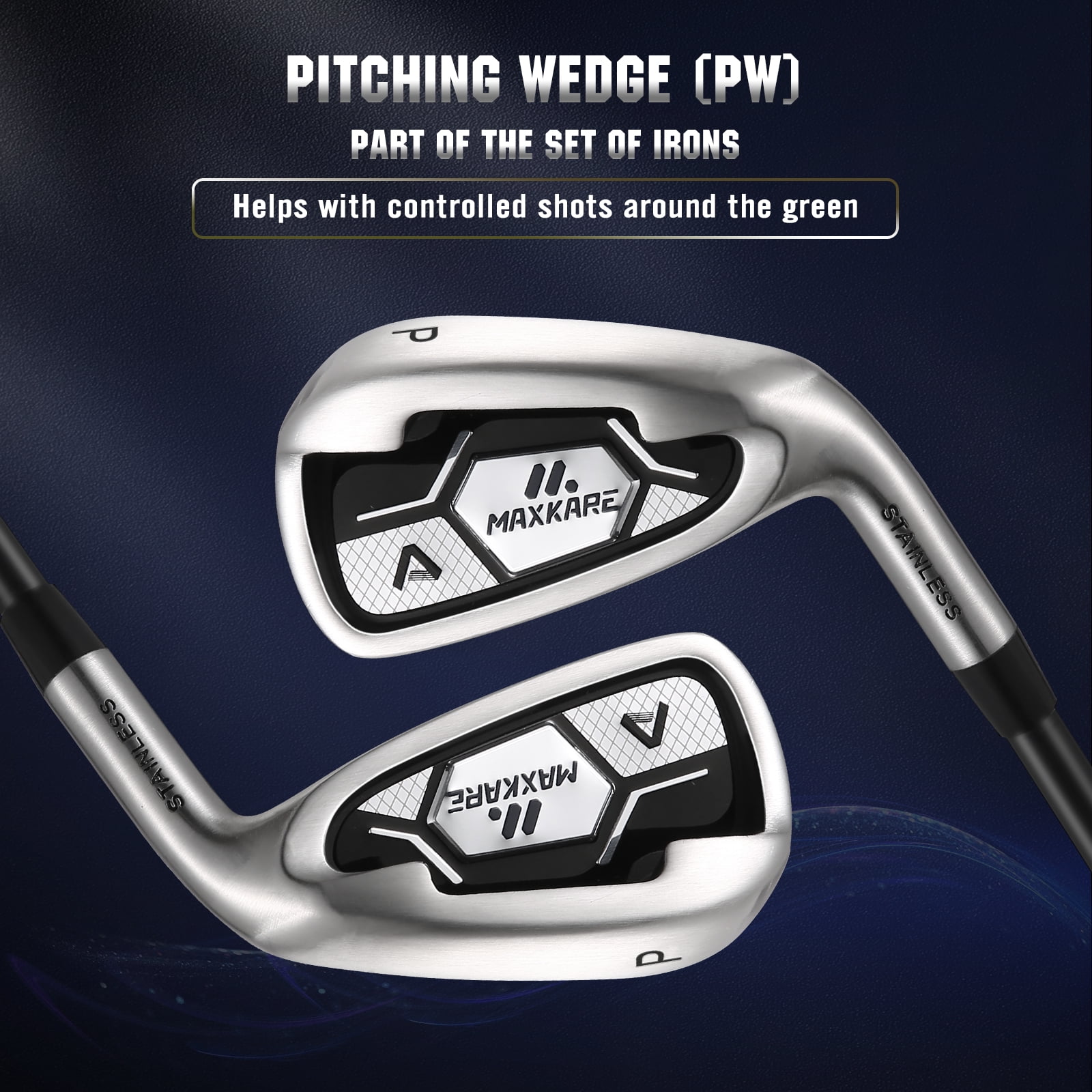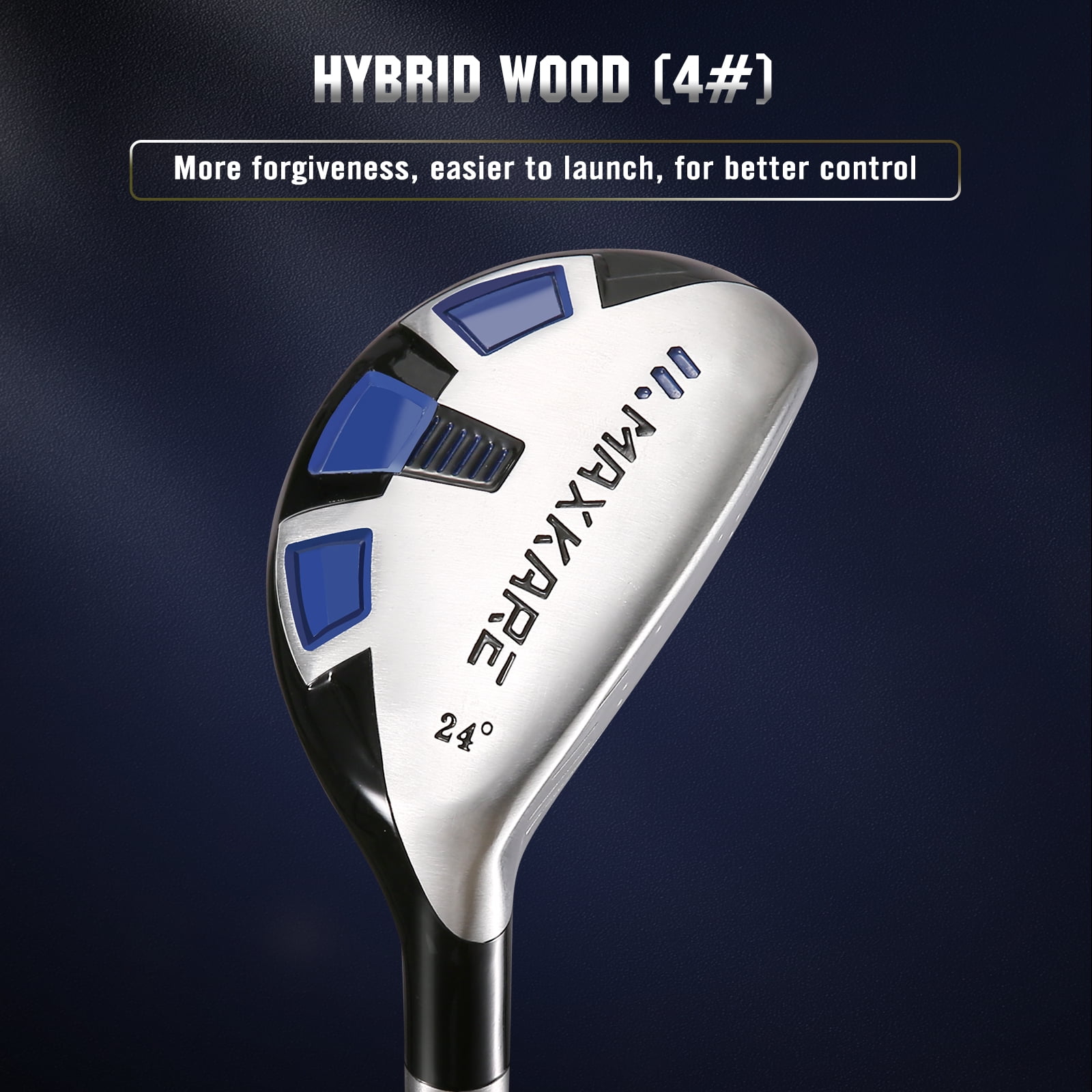 Features 1. Acoustic Structure Technology The combination of advanced geometric structure and acoustic design, as well as the back badge made of a variety of materials, can reduce the vibration of golf clubs and give golfers a more confident hitting sound and feel. 2. Low Barycenter & High Rebound Coefficient The new grooved hosel with a low barycenter, combined with a thin face with a large rebound coefficient of golf clubs, can provide golfers with a continuous and stable hitting effect. The 360° deep space concave back design of the golf clubs reduces the weight at the top line, redistributes the weight, and lowers the barycenter, while the tuning structure can help absorb vibration. 3. New Forging Process The forging process of the golf clubs can achieve better pitch and fault tolerance for the club. Under suitable temperature and stress conditions, the forging process increases the density of the material, which greatly increases the hardness and strength of the club, and brings durability in use. 4. New Material Structure + Apportioned Counterweight The shaft of the golf clubs is made of multiple layers of black fiberglass for lighter weight. Wooden club head match with aluminum alloy; iron club head match with stainless steel; putter clubhead match with titanium alloy to improve stability and fault tolerance professionally and bring a confident experience to golfers. 5. Complete Golf Clubs Set for Male The MaxKare 9-piece golf clubs set for adult is designed for maximum performance right out of the box. The set includes Driver, Fairway, Hybrid, 6 – 9 Iron, PW, Putter, Stand Bag, and 3 Head covers. Total 13 pieces(9 clubs, 3 head covers and 1 golf bag) Maintenance 1. Before playing, please use a dry towel to rub and preheat the clubhead to increase its temperature and soften it. 2. After playing, please wipe the clubhead with a towel to remove dust and use a pointed object (such as cotton swabs) to remove the mud in the groove. Attention: Do not use metal objects to remove the mud because it will scrape off the coating of the club head, which will make the clubhead rust easily over time. 3. Please wipe the club with a damp cloth and dry it with a dry towel. Wait for the club to dry completely before putting it in the bag. Package Included (13 Pieces in Total) Driver- #1 Wood- 10.5°-45“Length- 1PCS Fairway- #3 Wood- 15°-43″ Length-1PCS Hybrid- #4H Wood- 24°-40″Length-1PCS 6 Iron- 29°-37.5″ Length-1PCS 7 Iron-32°-37″ Length- 1PCS 8 Iron-36°-36.5″ Lenth- 1PCS 9 Iron-41°-36″ Length-1PCS PW Iron- 45°-35.5” Length-1PCS Putter- 3°-34“ Length- 1PCS Head Covers-3PCS Stand Bag- 1PCS
