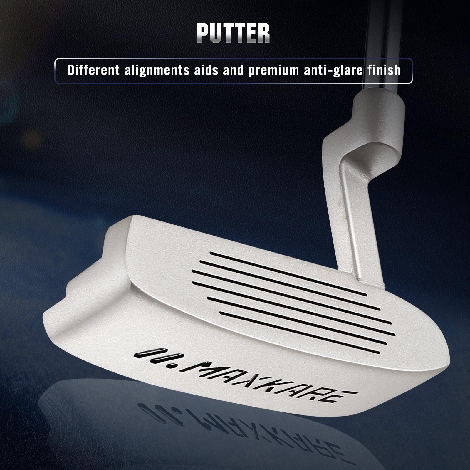 1. Acoustic Structure Technology The combination of advanced geometric structure and acoustic design, as well as the back badge made of a variety of materials, can reduce the vibration of golf clubs and give golfers a more confident hitting sound and feel. 2. Low Barycenter & High Rebound Coefficient The new grooved hosel with a low barycenter, combined with a thin face with a large rebound coefficient of golf clubs, can provide golfers with a continuous and stable hitting effect. The 360° deep space concave back design of the golf clubs reduces the weight at the top line, redistributes the weight, and lowers the barycenter, while the tuning structure can help absorb vibration. 3. New Forging Process The forging process of the golf clubs can achieve better pitch and fault tolerance for the club. Under suitable temperature and stress conditions, the forging process increases the density of the material, which greatly increases the hardness and strength of the club, and brings durability in use. 4. New Material Structure + Apportioned Counterweight The shaft of the golf clubs is made of multiple layers of black fiberglass for lighter weight. Wooden club heads match with aluminum alloy; iron club heads match with stainless steel; putter clubheads match with titanium alloy to improve stability and fault tolerance professionally and bring a confident experience to golfers. 5. Maintenance – Before playing, please use a dry towel to rub and preheat the clubhead to increase its temperature and soften it. – After playing, please wipe the club head with a towel to remove dust and use a pointed object (such as cotton swabs) to remove the mud in the groove. Attention: Do not use metal objects to remove the mud because it will scrape off the coating of the club head, which will make the clubhead rust easily over time. – Please wipe the club with a damp cloth and dry it with a dry towel. Wait for the club to dry completely before putting it in the bag. Piece Count: 8 Golf Clubs, 3 Head Covers, Stand Bag (12 Pieces in Total)