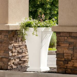 The Bordeaux 22″ x 22″ x 40″ Square White Polyethylene Planter is a gorgeous addition to any patio or front entrance and is inspired by both art deco and mid-century modern aesthetics. These planters can be used for outdoor applications anywhere, as they are resistant to high-impact, chemicals and extreme weather conditions – it stands true to its ‘four-season use’ tag. If your goal is to add a bold twist to the contemporary design we see around us, without breaking the bank, consider using Bordeaux Collection today!