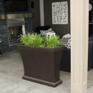 The Bordeaux 40″ x 15″ x 32″ Rectangle Espresso Polyethylene Trough Planter is a gorgeous addition to any patio or front entrance and is inspired by both art deco and mid-century modern aesthetics. These planters can be used for outdoor applications anywhere, as they are resistant to high-impact, chemicals and extreme weather conditions – it stands true to its ‘four-season use’ tag. If your goal is to add a bold twist to the contemporary design we see around us, without breaking the bank, consider using Bordeaux Collection today!