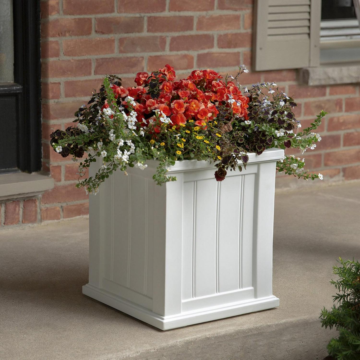 Mayne Cape Cod 16 x 16 x 18 Square White Self-Watering Polyethylene Planter
