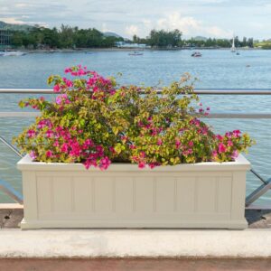 Our Cape Cod 36″ x 11″ x 10.8″ Rectangle White Self-Watering Polyethylene Window Box Planter perfectly captures the New England way of living – transforming your outdoor space into your own personal retreat. Its bead board panel design with rich architectural details fits in perfectly, whether its used in a rustic farmhouse or in a gorgeous cottage by the beach. These window boxes are made from 100% high-grade Polyethylene that make it weatherproof and have an ultra-tough construction. Built-in water reservoir provides plants with a consistent source of moisture.