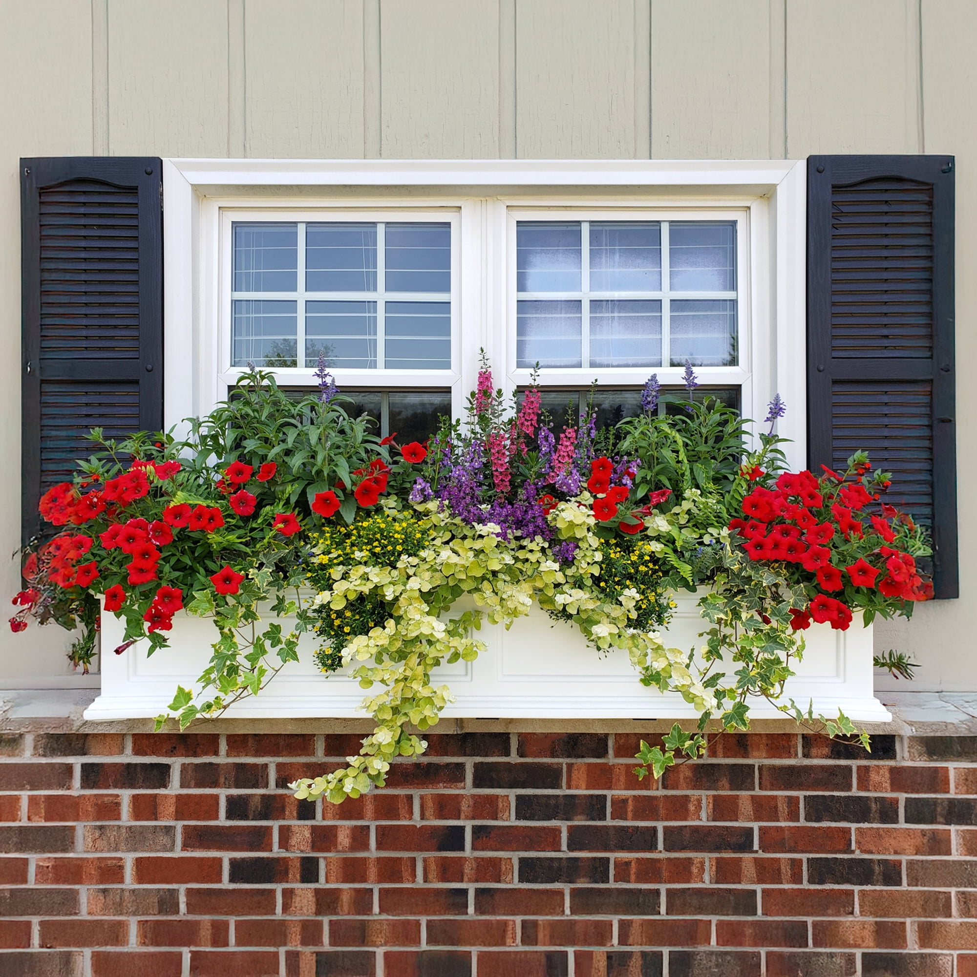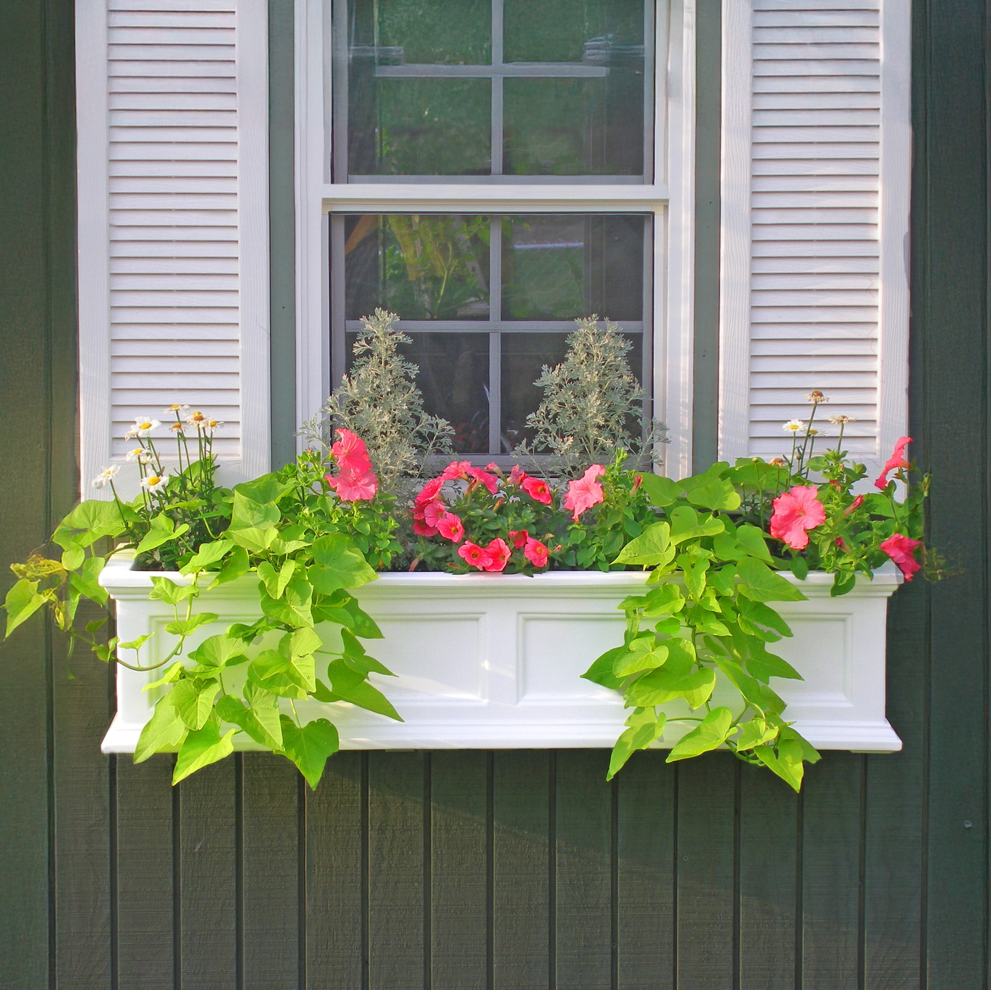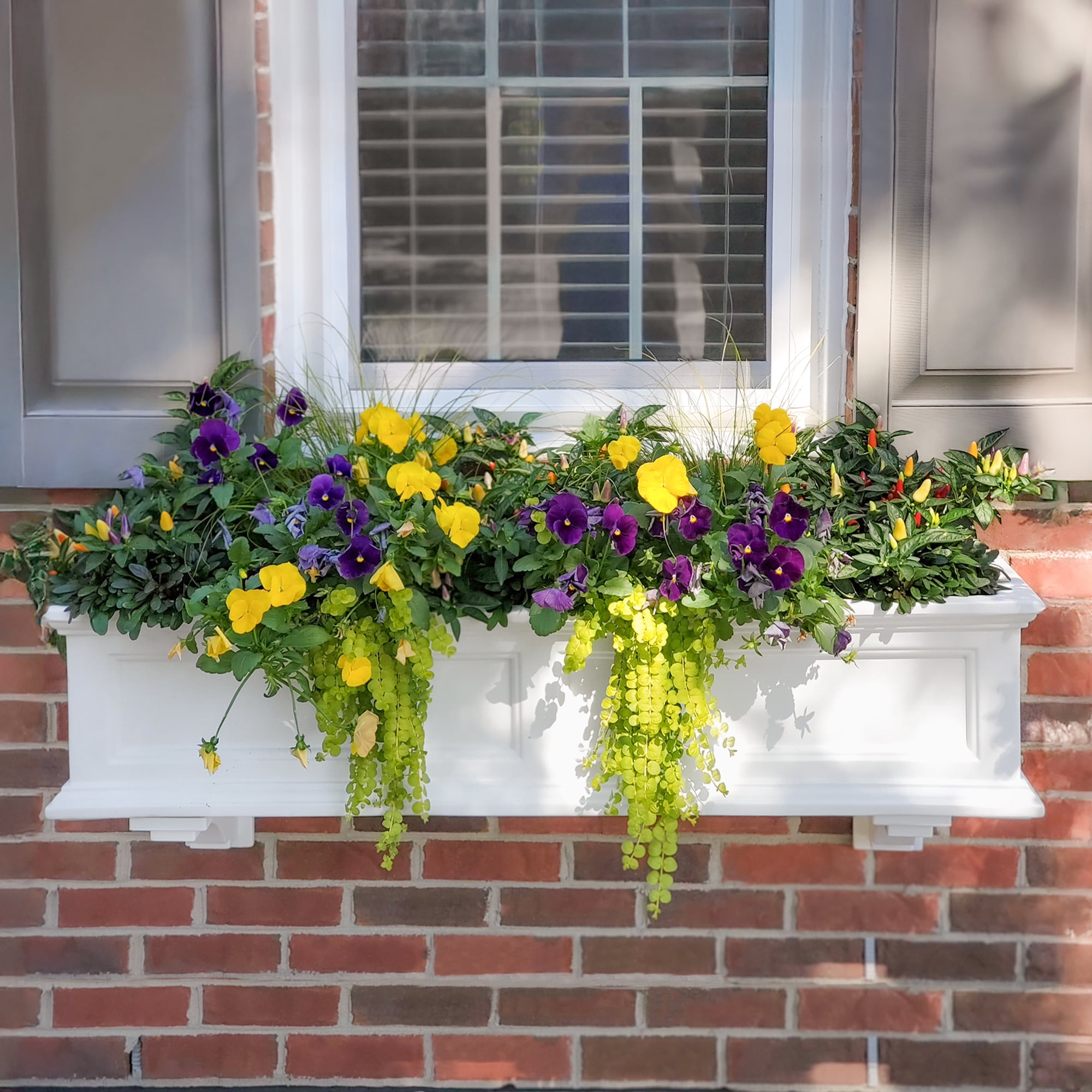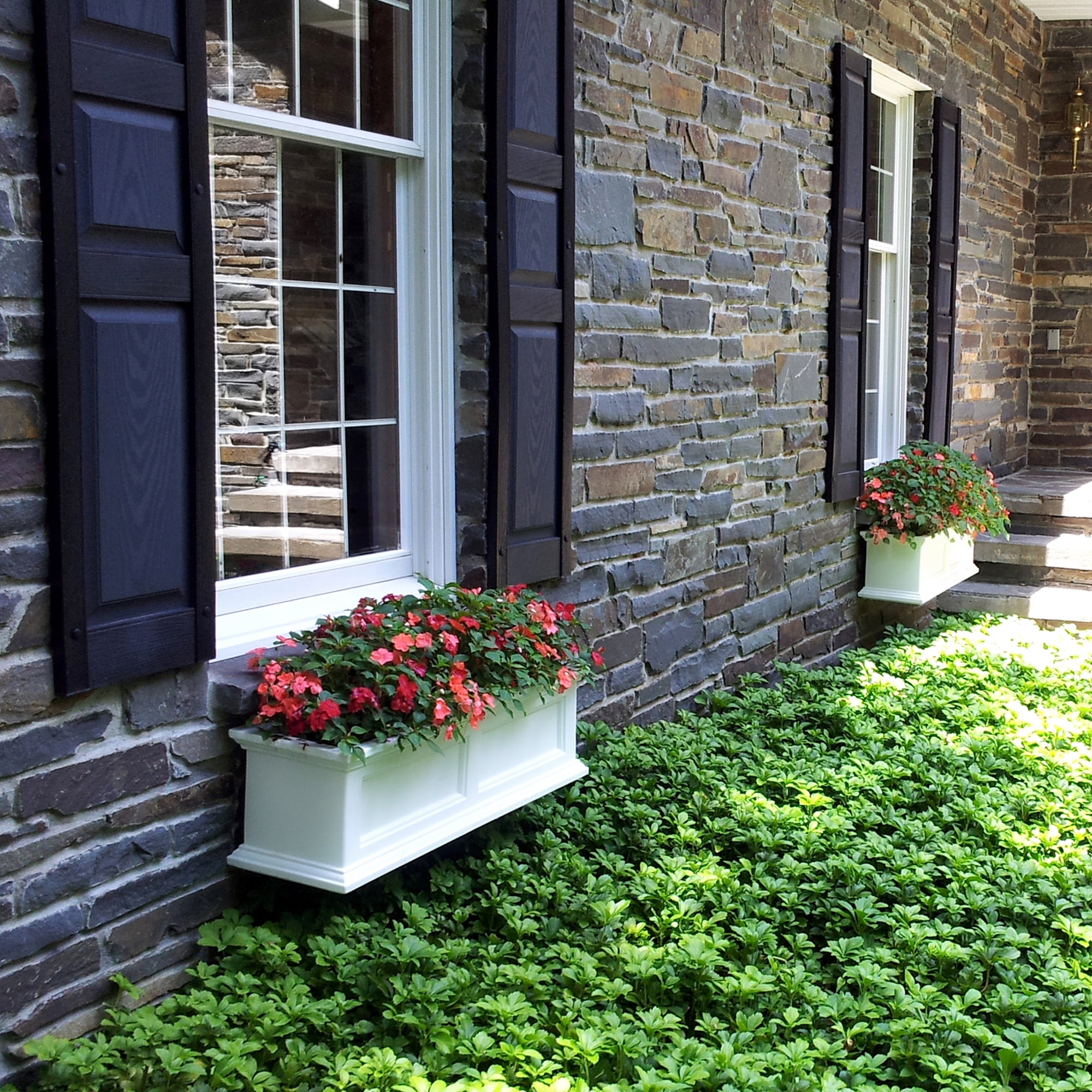 Self watering feature keeps plants consistently hydrated and healthy, reducing maintenance while ensuring lush, thriving displays that enhance any indoor or outdoor space UV fade resistant polyethylene maintains its rich color while providing durable protection against sun exposure and harsh weather for lasting outdoor performance Includes durable steel wall mount brackets for secure installation, with complementary accessories sold separately to customize and complete your setup with ease Engineered for reliable all season performance with integrated overflow drainage that protects roots, prevents overwatering, and promotes strong, healthy growth Outer Dimensions: 48in L x 11in W x 11in H Inner Dimensions: 45in L x 7.5in W x 8in H Weight: 20lb Soil Capacity: 9.5 Gal Water Reservoir Capacity: 4 Gal Clean with mild soap, water, and a soft cloth; rinse with a hose or gently power wash surfaces to maintain a fresh, clean appearance and keep your product looking new