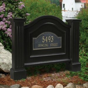 The Nantucket 39.5″ x 6.9″ x 31.5″ Traditional Black Polyethylene Address Sign is a beautiful, timeless classic arch that is distinctive in appearance and lets you express your personalized taste. Add curb appeal to your home with the charm of a New England styled ground mount address sign that easily installs over standard 4×4 wood inserts. It also does not require any sort of painting or staining over time. The address sign is versatile – mount plaques both on the front and back of this product.