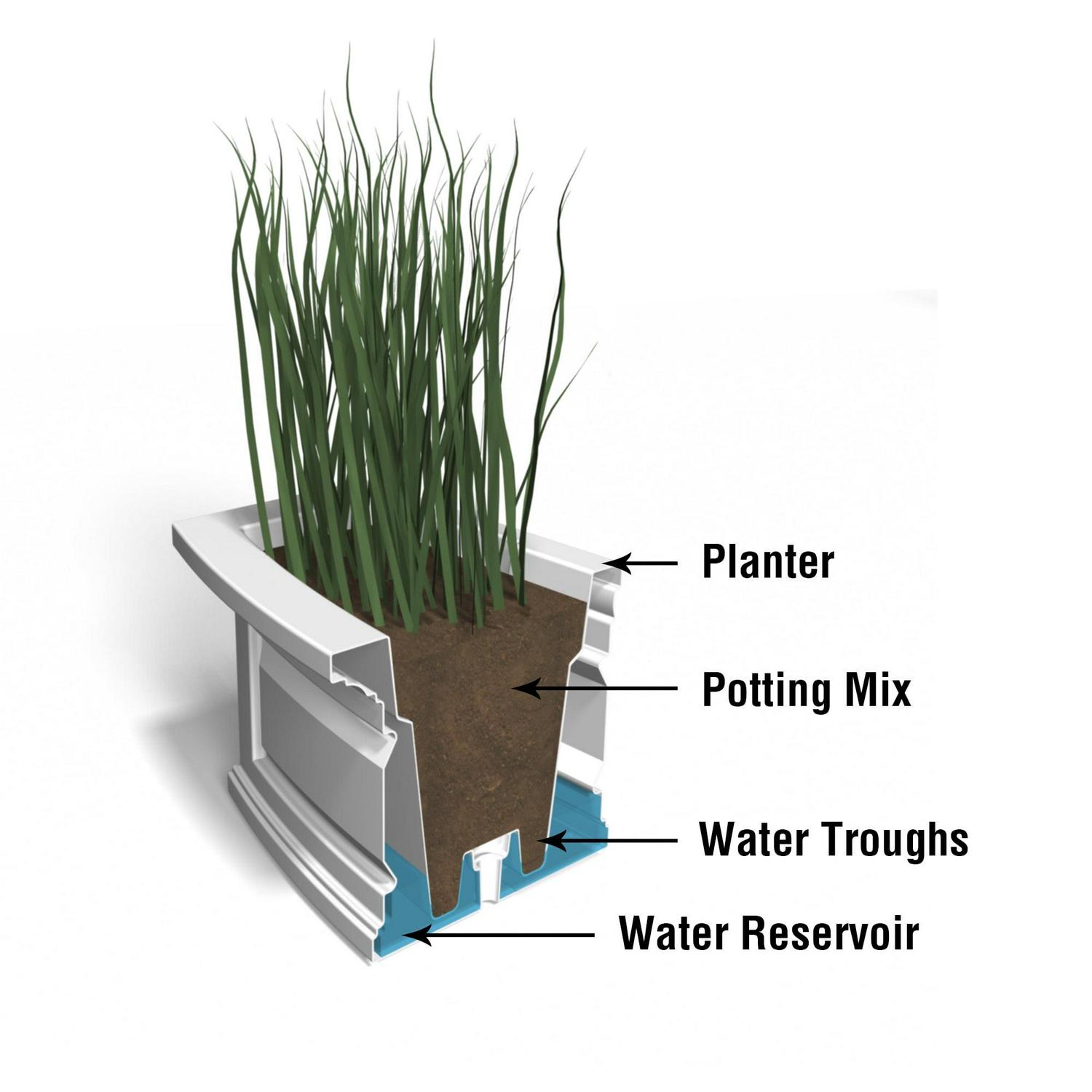 Life gets busy, and constantly monitoring your plants can become difficult. But with help of Mayne s line of self-watering window boxes, caring for your plants just got easier! The Nantucket 5ft Window Box (60″ x 11.7″ x 10.2″) comes with a built-in water reservoir. The water reservoir can be filled by just watering your plants directly. You can also directly access the water reservoir by drilling a fill port hole. These window boxes come with a fill port plug to cover this hole. The overflow drainage hole allows excess water to seep out to protect roots from oversaturation and rot.