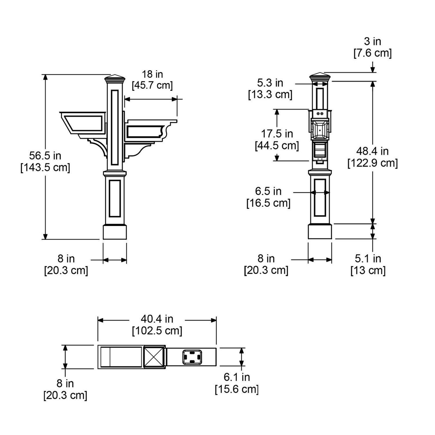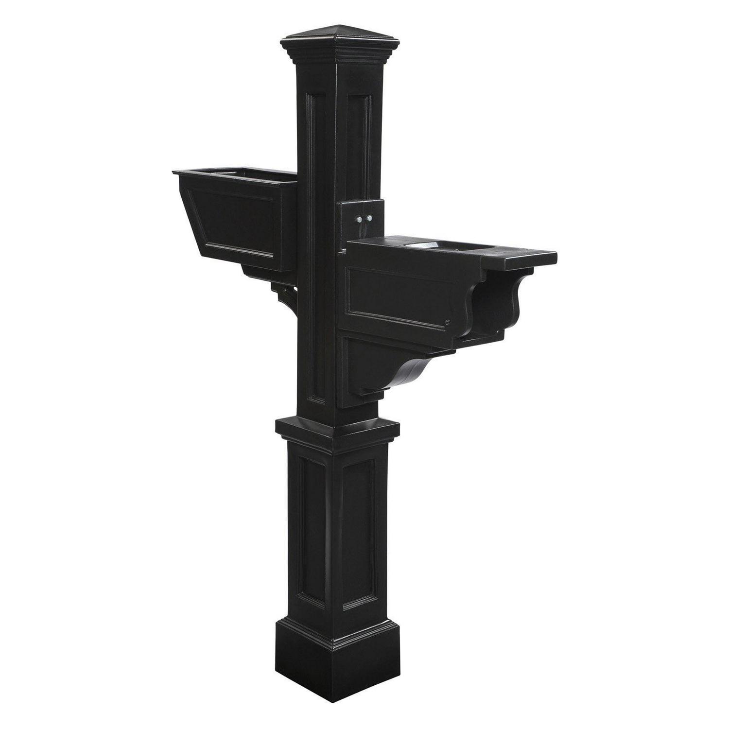 Timeless Style Infused in History. These classic lines were created with impeccable style and craftsmanship for lasting appeal. Unique New England-styled product offering the timeless charm of the East Coast, installs easily over a standard 4 x 4 wood post. Mayne plastic mail posts are made from high-quality 100% polyethylene with built-in UV inhibitors for long-lasting protection from the elements. Includes decorative post, planter arm, and mailbox support arm with paper holder slot.