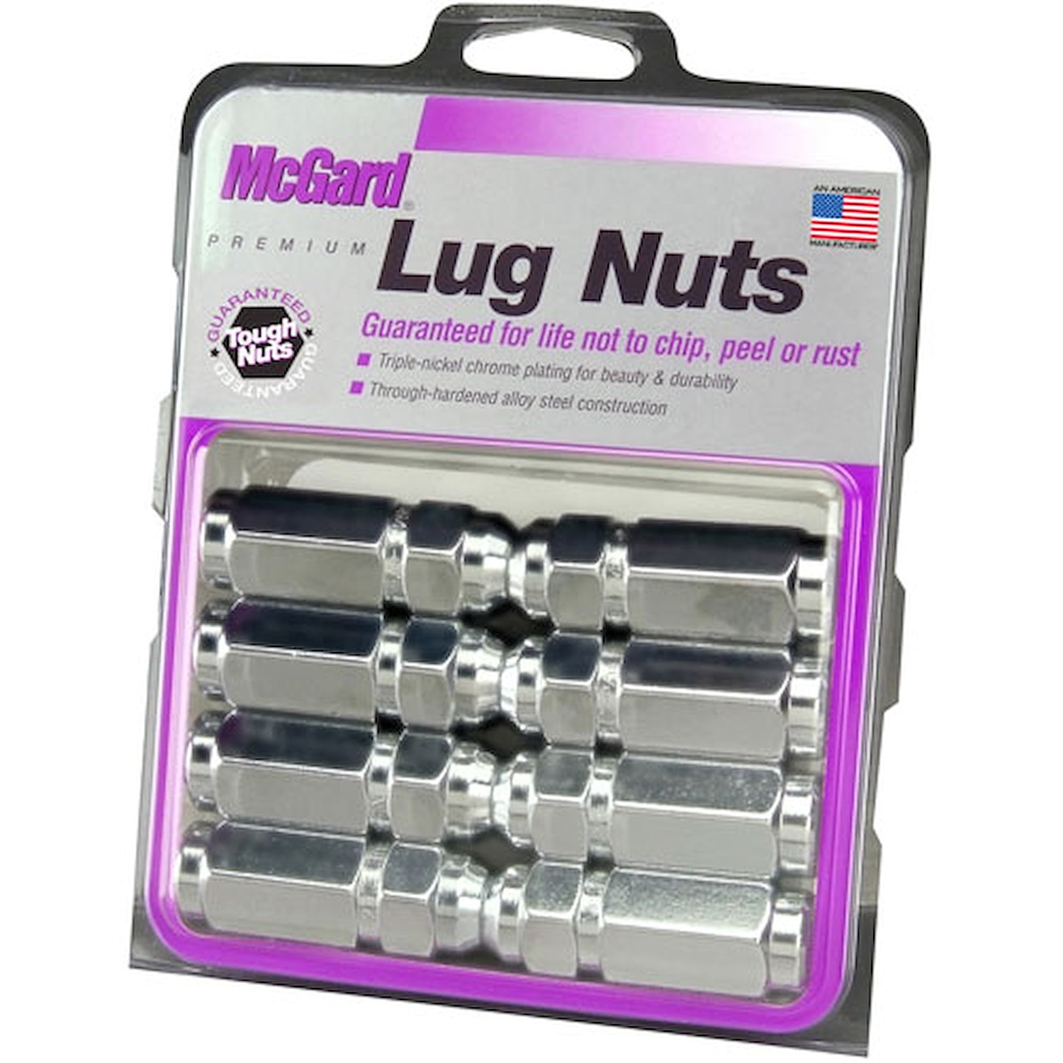 Chrome-plated lug nuts lead a tough life. Think about it, harsh elements, nasty corrosive wheel cleaners, and lead-foot drivers. Not to mention overzealous impact guns and loose-fitting lug wrenches. This kind of treatment destroys ordinary lug nuts which turn even the best-looking wheels ugly. Tough nuts can take the punishment and keep your wheels looking beautiful. McGard manufactures lug nuts in the USA to meet or exceed OEM standards for safety and durability. Every lug nut is fully machined from restricted chemistry steel made specifically for McGard and through-hardened for its unsurpassed level of safety. McGard’s plating process includes three layers of nickel and one layer of microporous chrome producing a superior finish while protecting against rust. Tough nuts are designed and built for the real world because life is tough. For use with steel or aluminum wheels with exposed decorative lug nuts that are tapered at the bottom. This product may contain globally sourced materials/components.