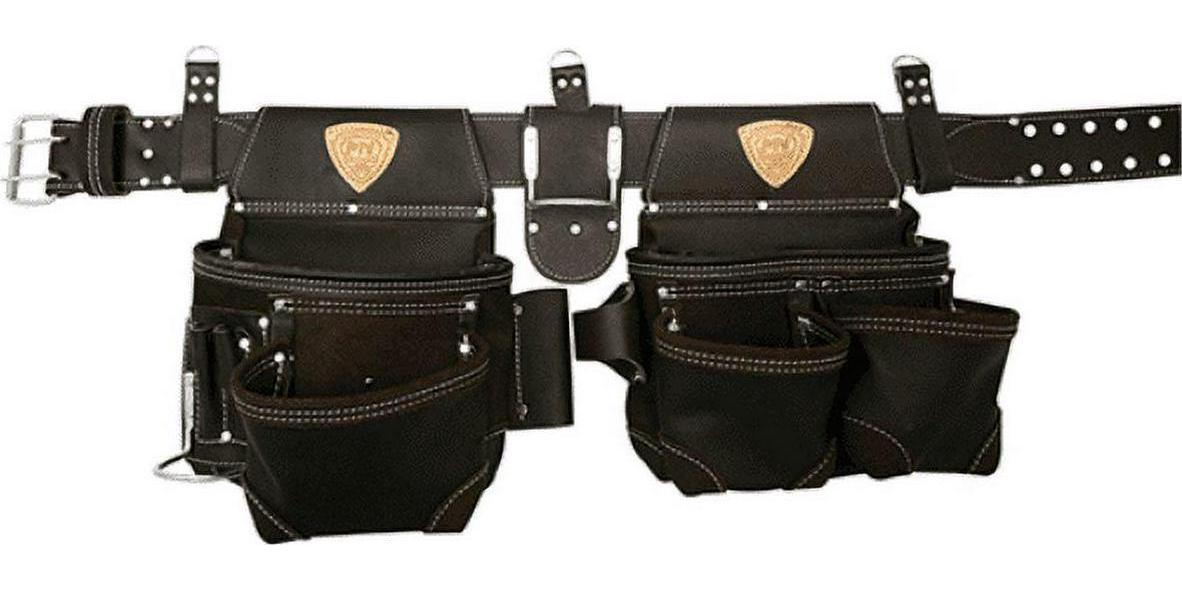– Great for all day professionals! The premium oil-tanned leather ensures this tool apron will have maximum durability. There are convenient D-rings for suspenders with a double-pronged roller buckle on the leather belt. This will fit up to a 50 waist.