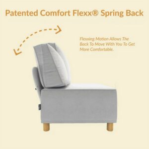 McKenzie & Co. 4-Piece Modular Sectional is the perfect upholstered seating combination for any room in your home. The 4-piece modular set features 2 Amless Chairs, a Corner Chair, and an Ottoman that can be configured into various set-ups to fit your room. The casual style of the modular features a super soft gray textured Velcro managed removable Slipcover fabric that is cleanable and machine washable and so easy to maintain. The solid round wood legs in a natural Wheat Finish complete the casual look. The modular set features 2 comfort focused patents. First, our Comfort Flexx Spring Back support helps you personalize your comfort while providing more seating area and taking up less space in your room. Second, our ChromSoft Seating makes for the most consistant, comfortable seating and mattress-like feel with a layer of luxurious Memory Foam that maintains its shape and look. The Modular seating is easy to assemble and comes with the parts and cushions stowed conveniently underneath.
