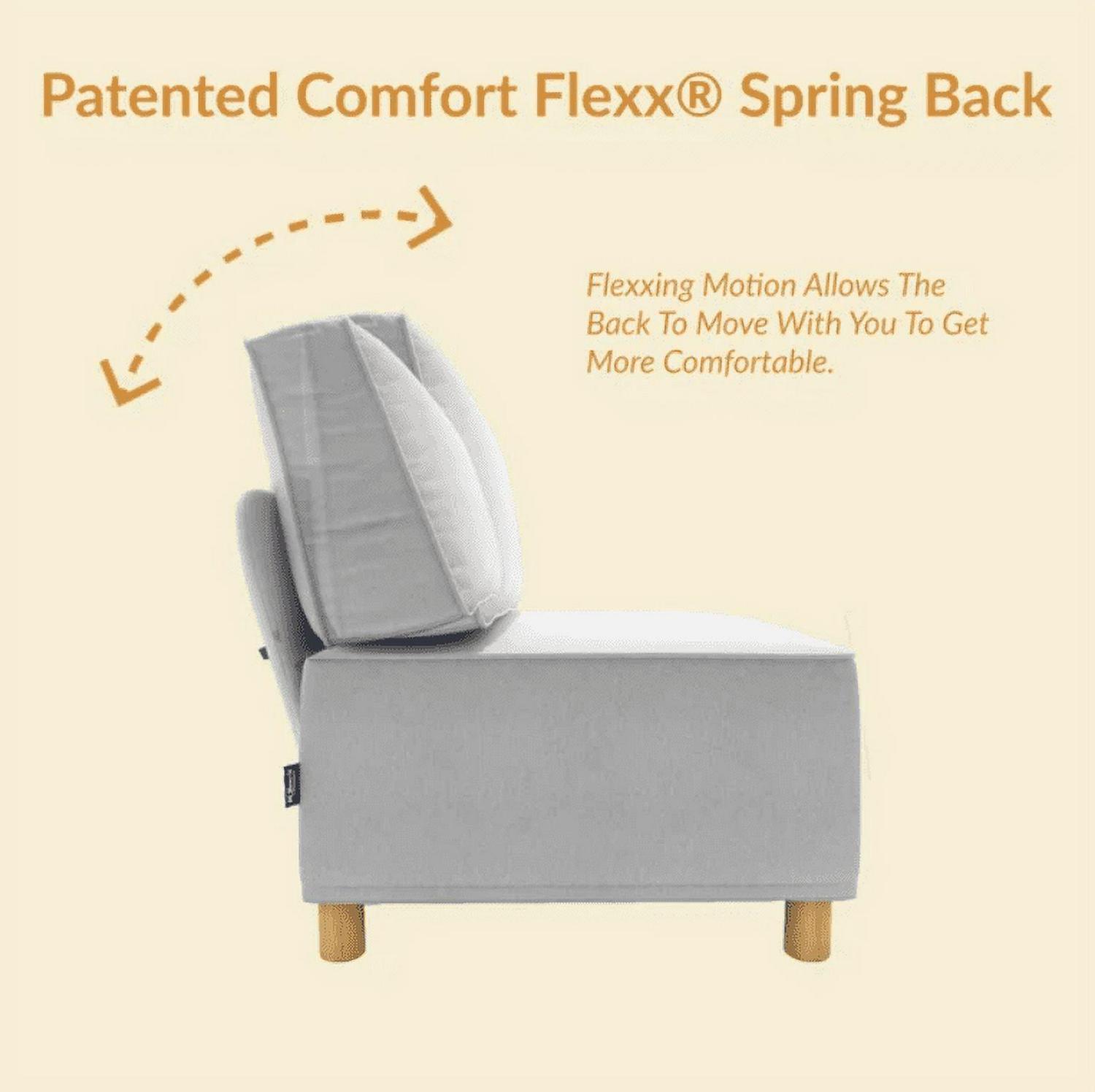 – Patented Comfort Flexx Back allows for personalized comfort, more seating room, and takes up less space