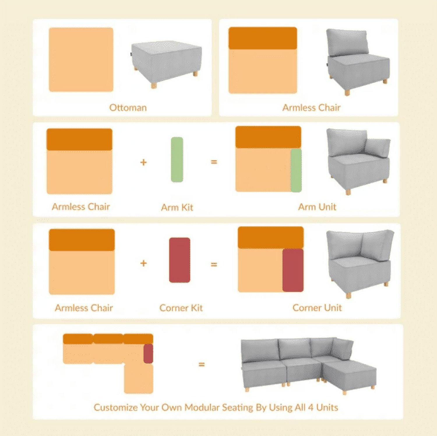 - True Modular Seating: Versatile, Movealbe, Configurable