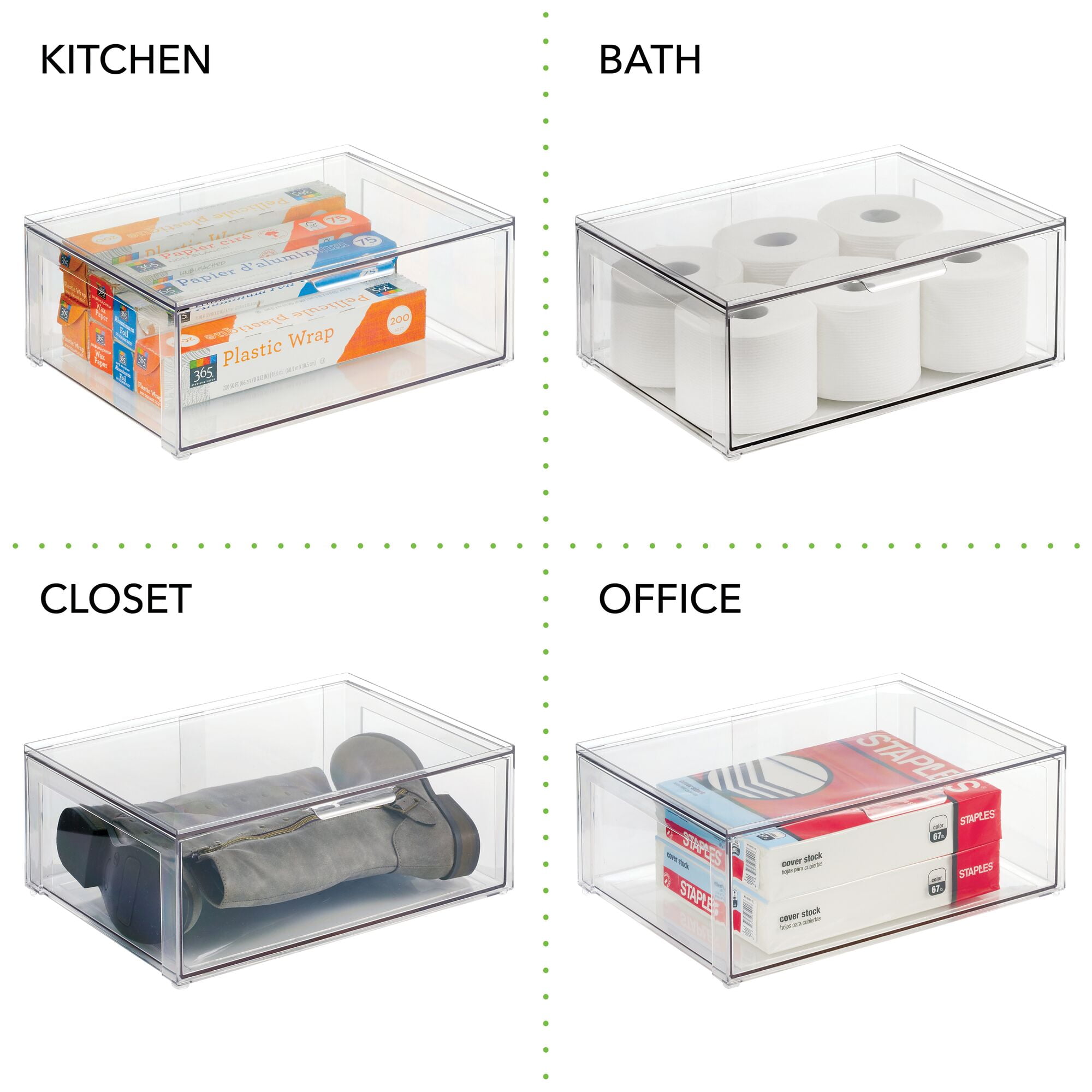 These Bathroom Storage Organizer Bins with Pull-Out Drawers by mDesign make it simple and easy to store and organize all of your health and beauty items. Clear construction allow you to see what is stashed inside and quickly grab what you need. The compact size is ideal for any room in the house. Mix and match with other mDesign bins to create a custom storage solution for your home. modern living by Design.
