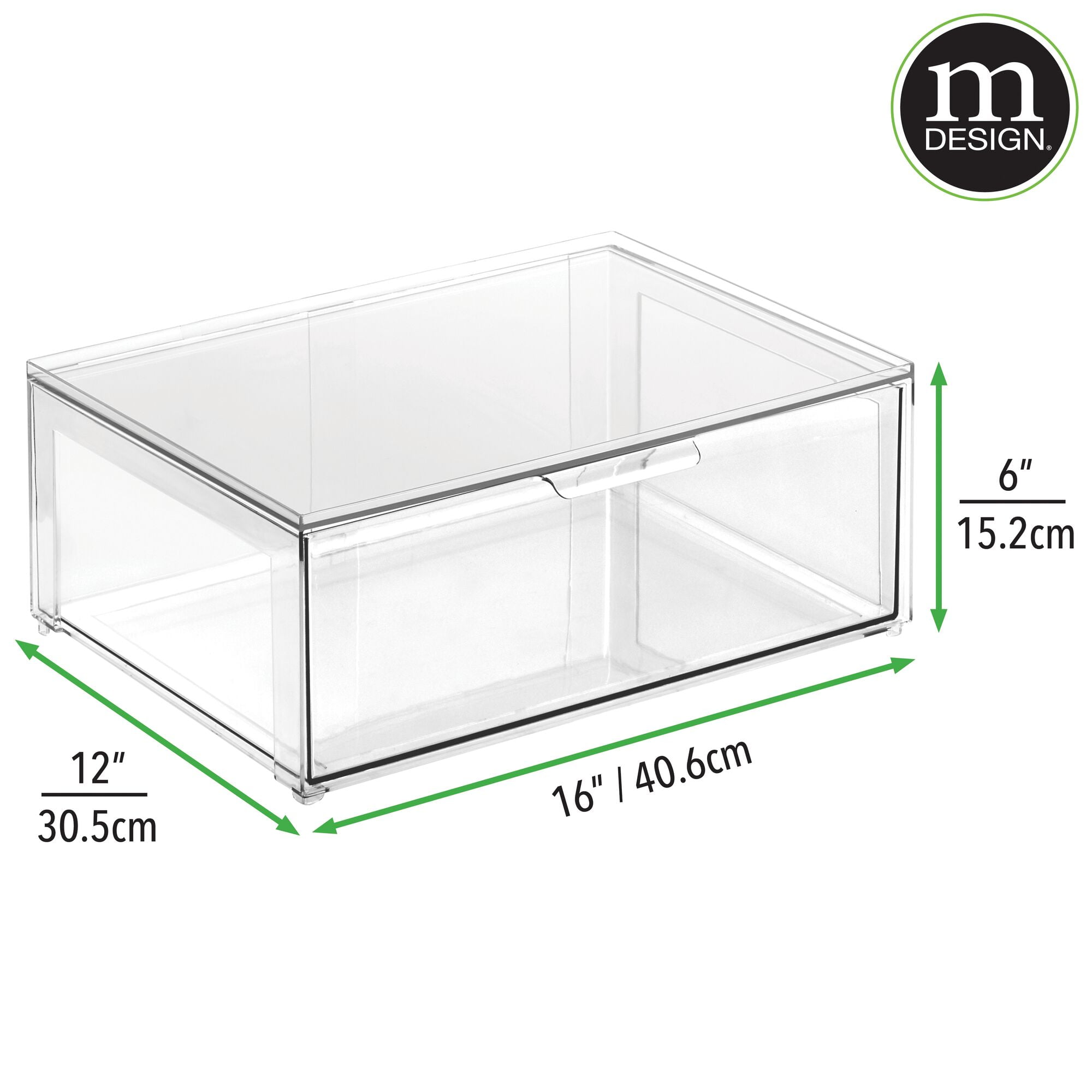 Pull-out drawers allow you to quickly grab contents inside STYLISH STORAGE: Organize clutter by keeping bath and beauty products sorted; Perfect for extra beauty basics; Use on vanity countertops, under the sink, or inside cabinets for more discreet storage FUNCTIONAL & VERSATILE: Great for keeping items organized + accessible; Stackable design can be used together or separately for custom storage; Ideal for compact spaces like apartments and dorm rooms QUALITY CONSTRUCTION: Made of durable shatter-resistant plastic EASY CARE: Clean with mild soap and water; Do not place in dishwasher THOUGHTFULLY SIZED: Measures 12″ x 16″ x 6″ high