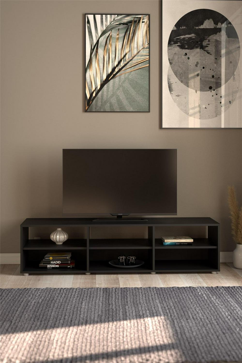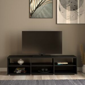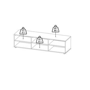 The 6 Shelf TV Stand features a simple, low-profile, functional design to keep all your media components organized. The simple yet appealing design can hold up to a 99-pound TV; includes three media compartments with an open back for cable management for streaming devices and gaming consoles as well as three closed back shelves allowing for additional space to display home decor, photos and more. This TV Stand is traditional Danish design and produced with an easy to clean foil surface