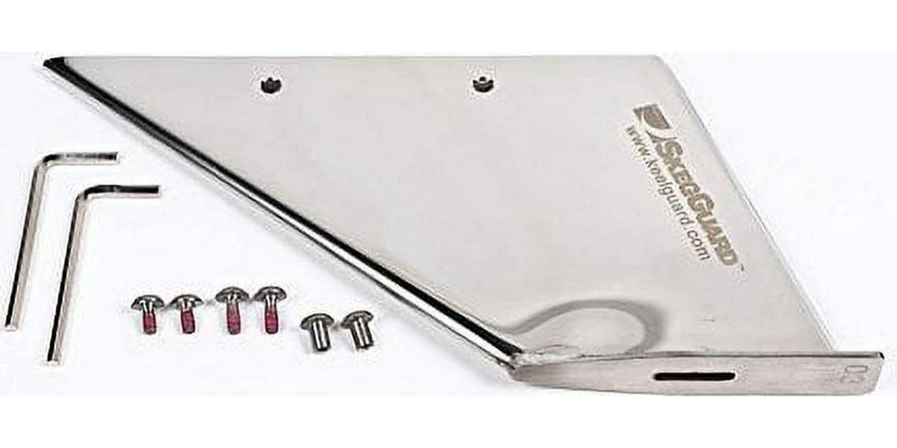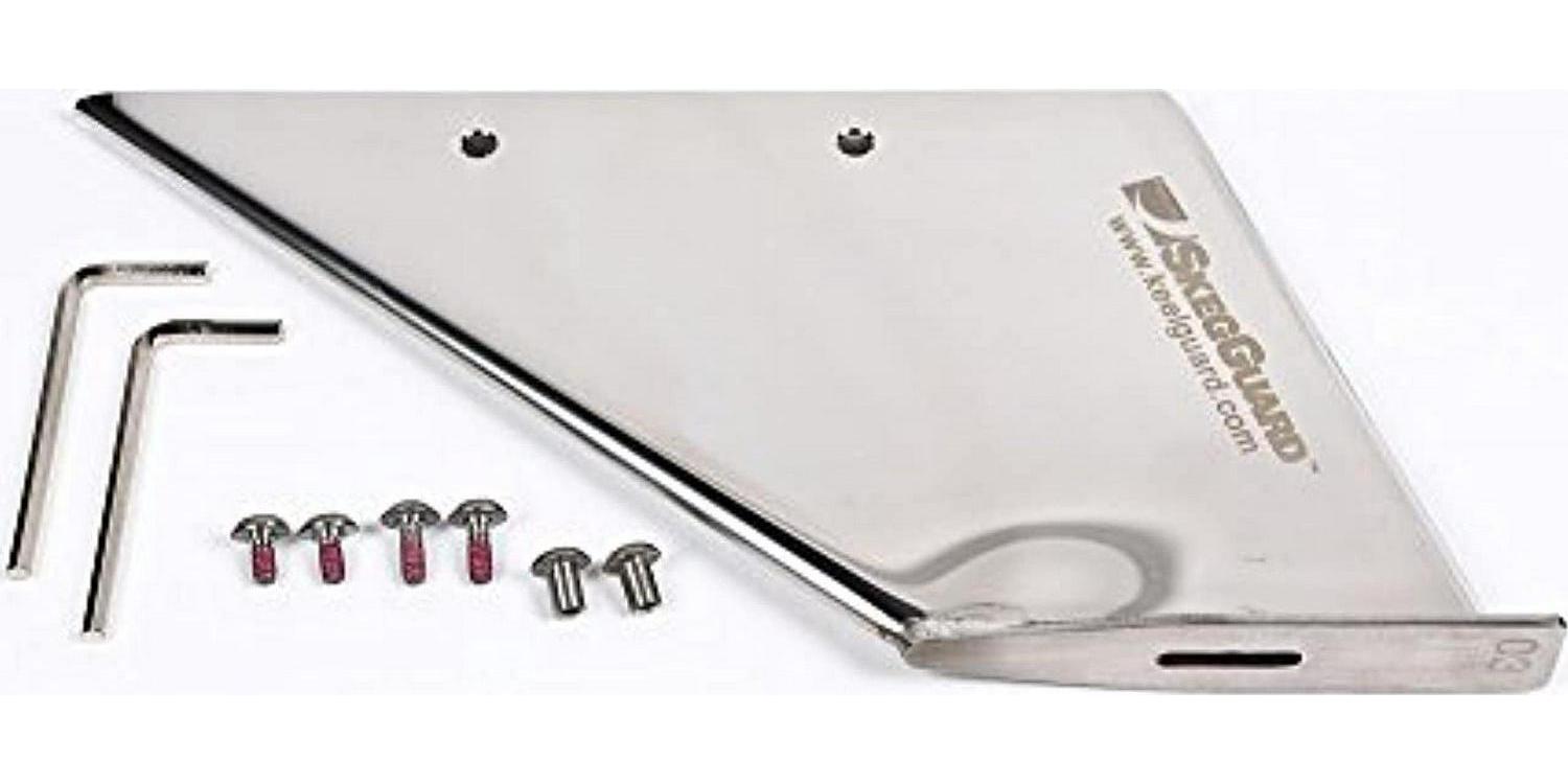 The Megaware SkegGuard is constructed of high quality marine grade 316 stainless steel that incorporates an extra reinforced wear tab across the bottom where the skeg is most vulnerable. This 3mm thickened lower plate will withstand damage or abrasion from hidden rocks and debris or accidental ramp dragging. The Megaware SkegGuard conforms to your lower unit to insure there is no discernible drag or compromise in performance. A drain hole keeps water from collecting and remaining stagnant. Secured with self-locking hardware, the Megaware SkegGuard can be installed with common tools in less than 10 minutes. It will provide years of service and save hundreds of dollars in potential repairs. If replacing an already broken skeg, the Megaware SkegGuard can be installed on a lower unit with as little as 2 inches of skeg remaining. It will be stronger and much more affordable than welding and replacing a lower skeg. Fits Mercruiser Bravo I & II 1990-Present.