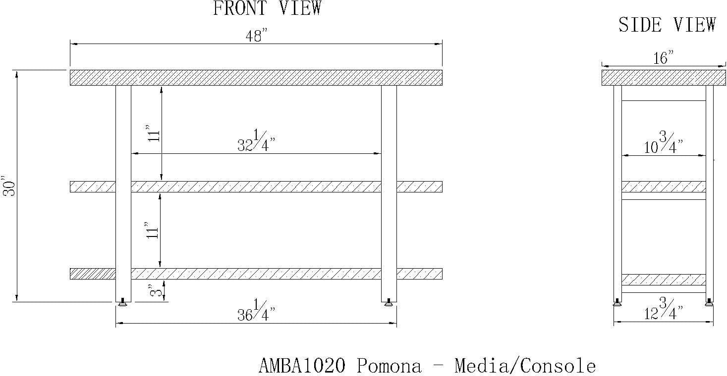 - Assembled Product Dimensions (L x W x H): 16.00 x 48.00 x 30.00 Inches