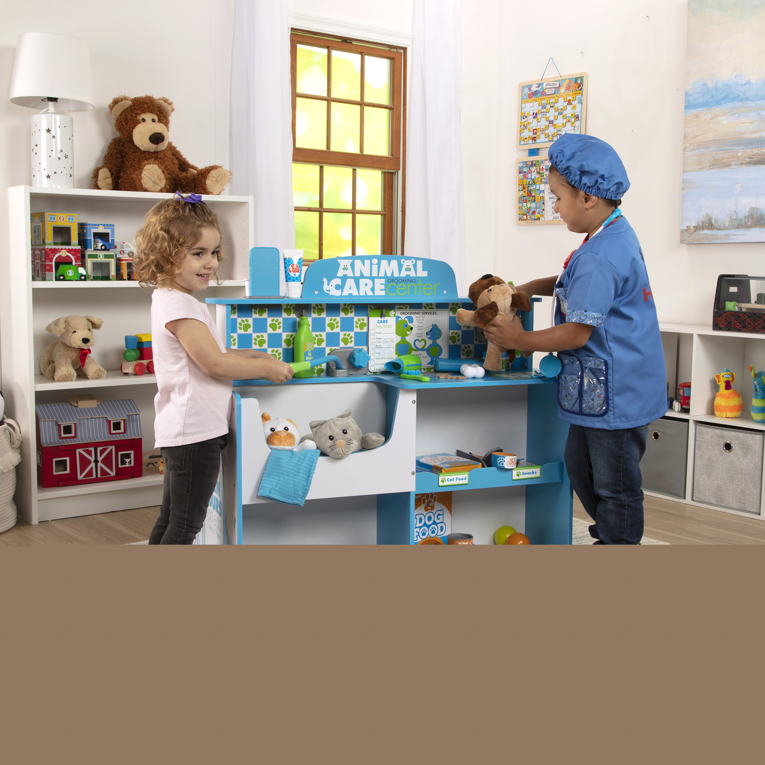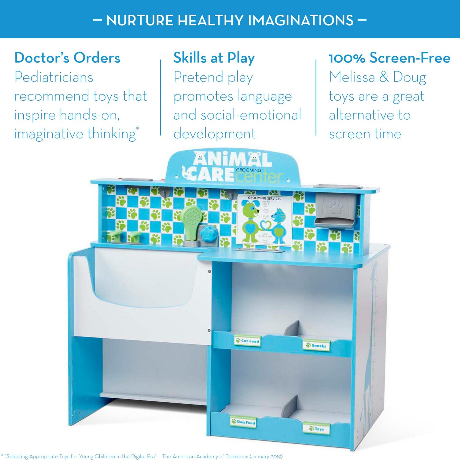 Melissa and Doug Animal Care Veterinarian and Groomer Wooden Activity Center for Plush Stuffed Pets (Not Included)