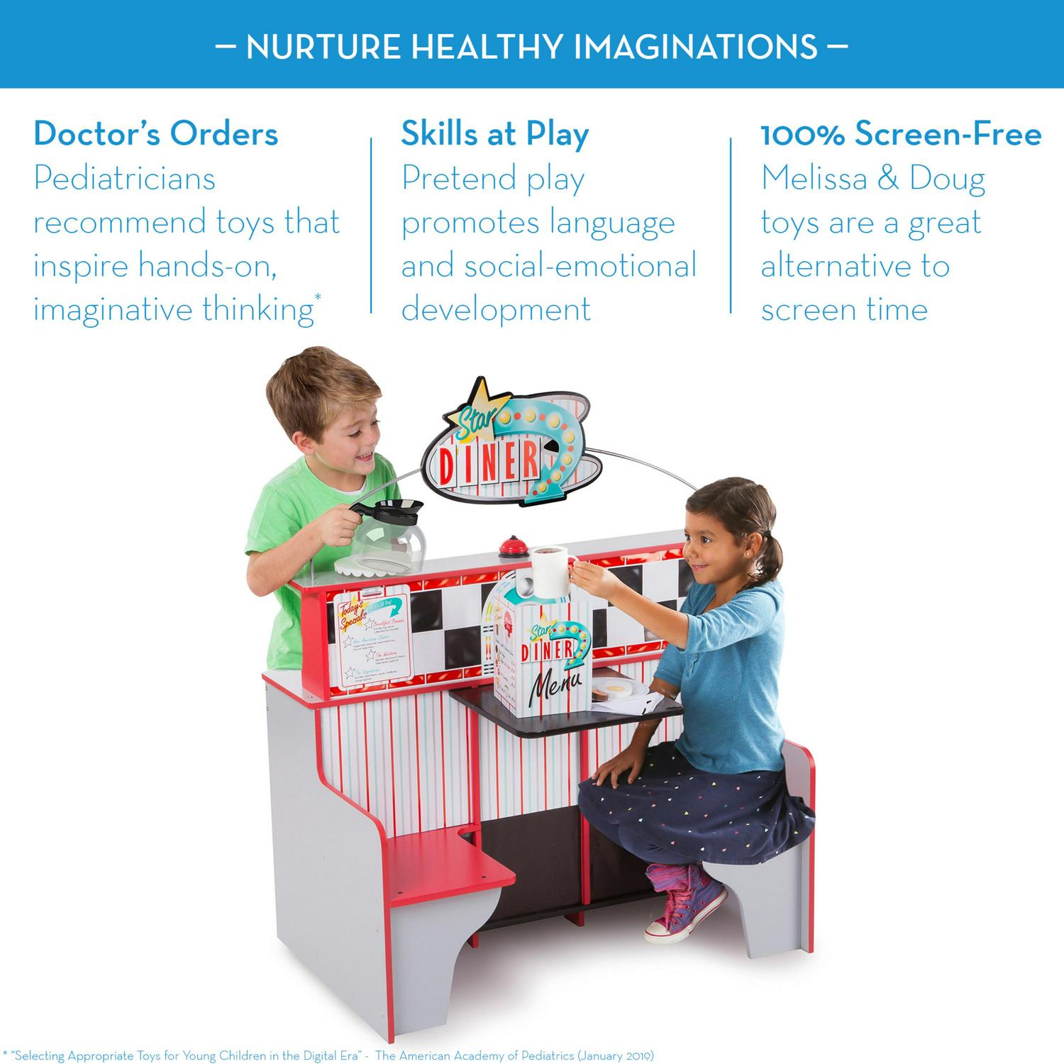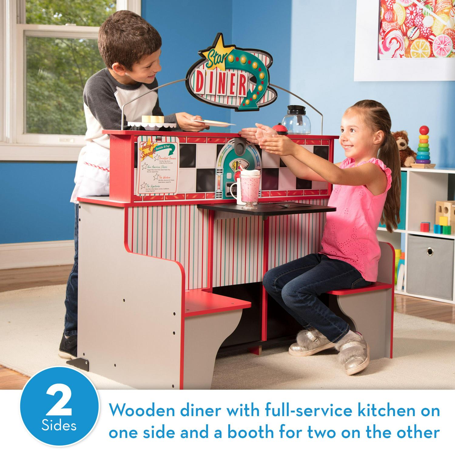 Melissa and Doug Double-Sided Wooden Star Diner Restaurant Play Space