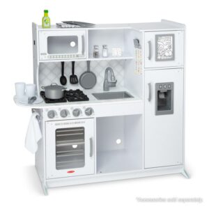 Melissa and Doug Wooden Chefa s Pretend Play Toy Kitchen With a Icea Cube Dispenser a Cloud White – FSC-Certified Materials