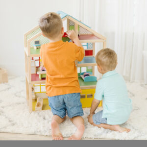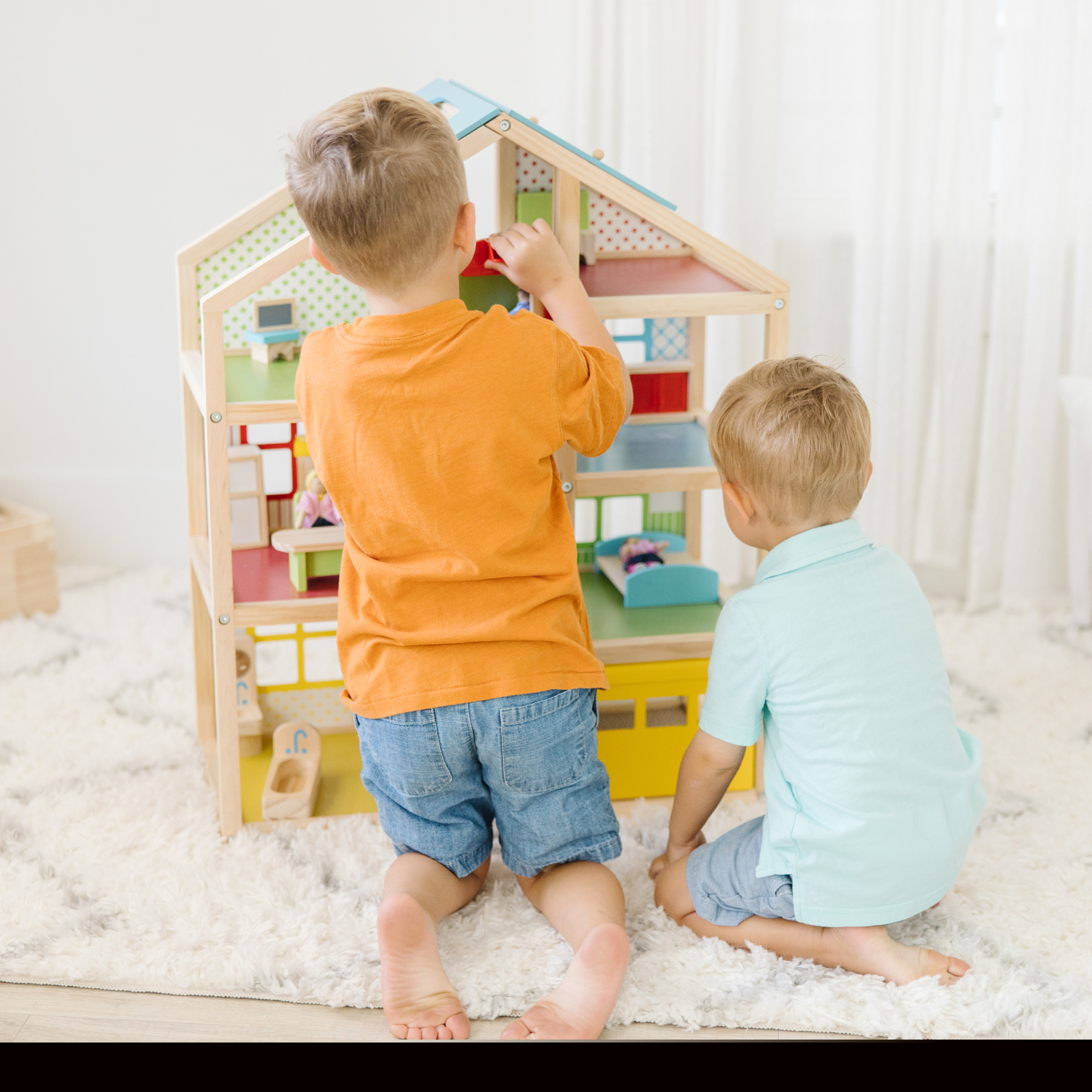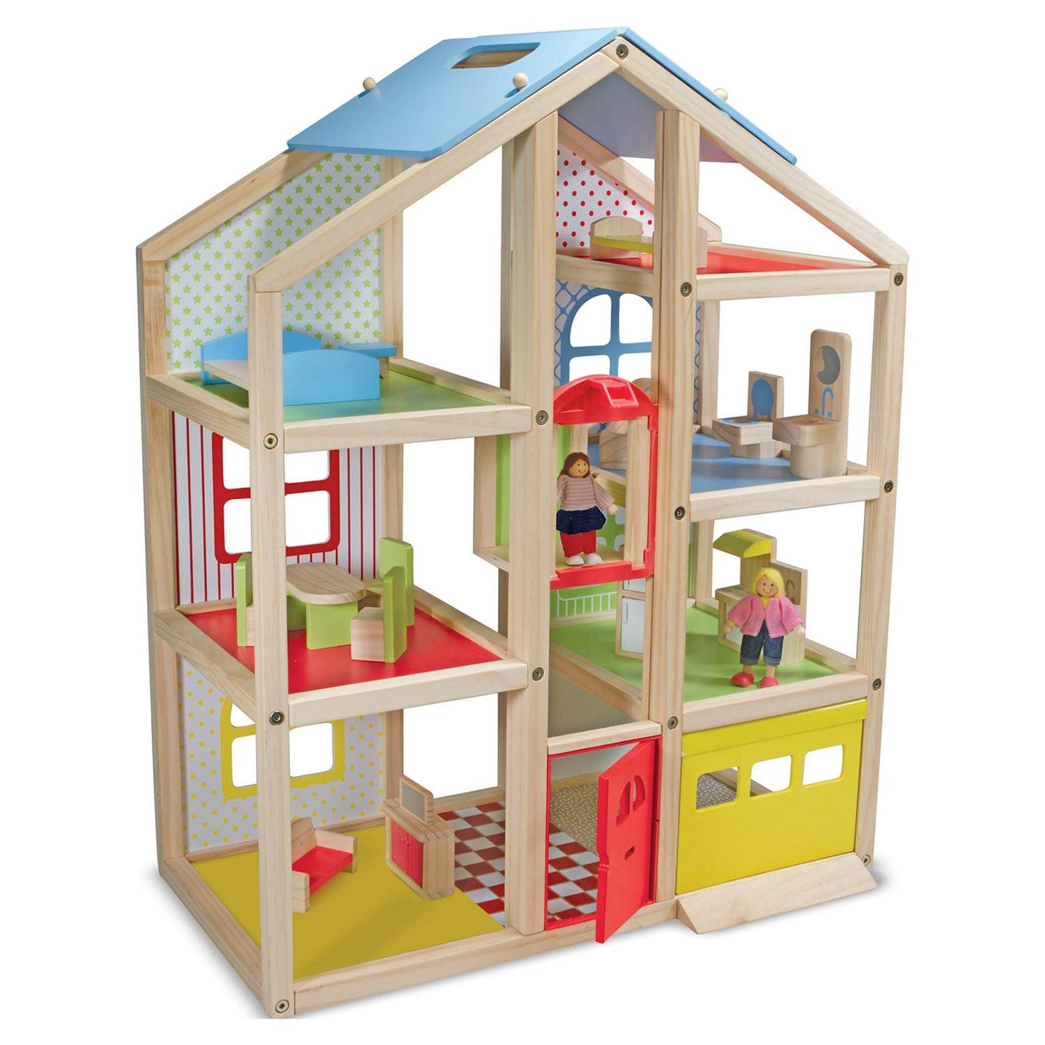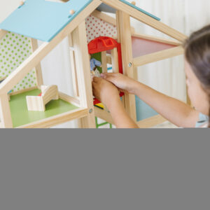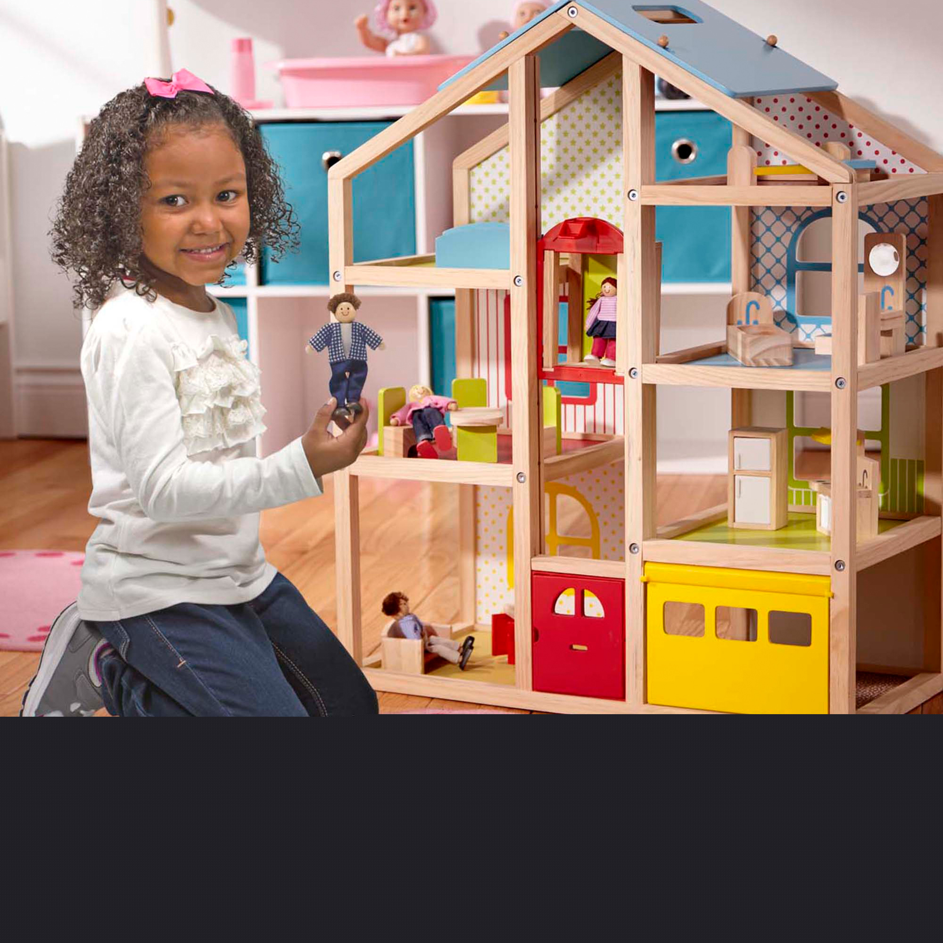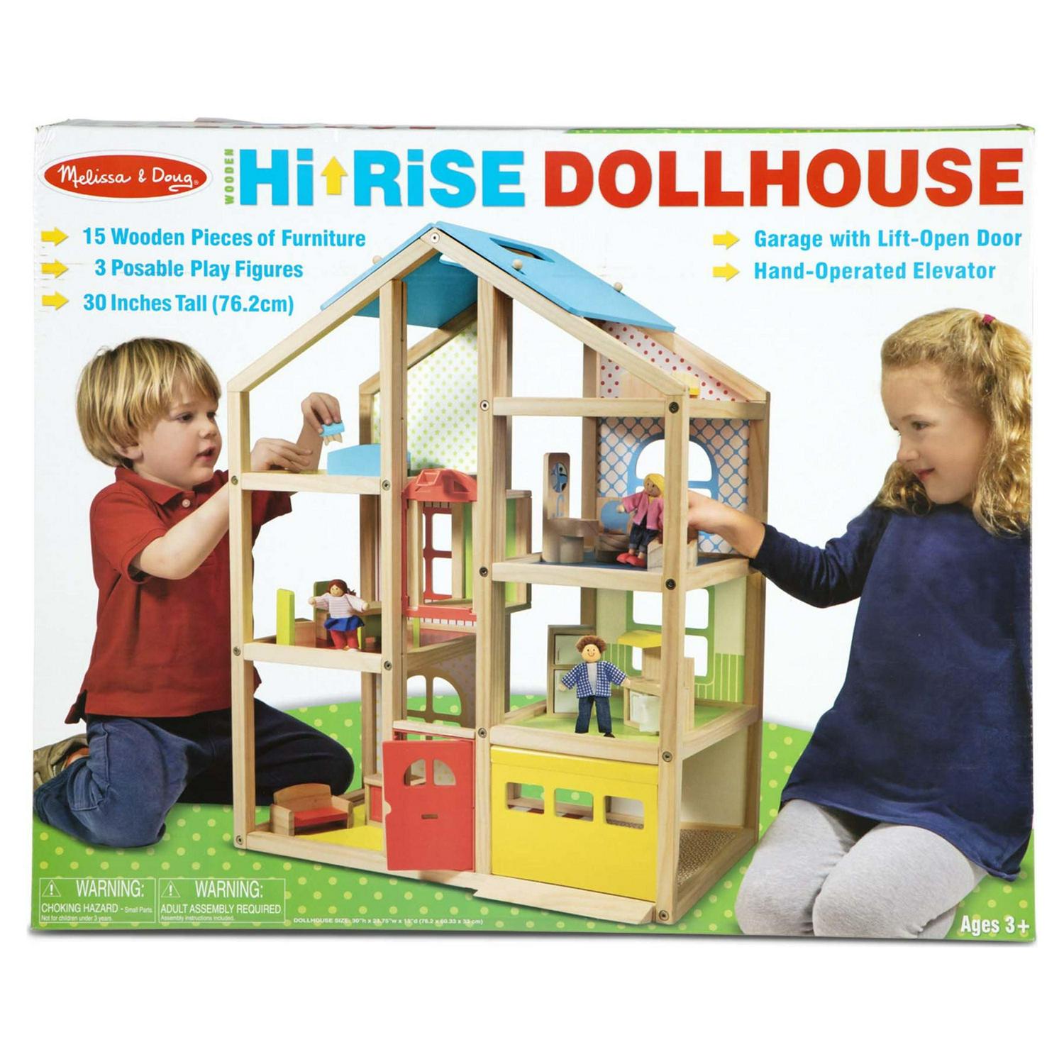 Melissa and Doug Wooden Hi-Rise Dollhouse With 15 Furniture Pieces, Garage, Working Elevator