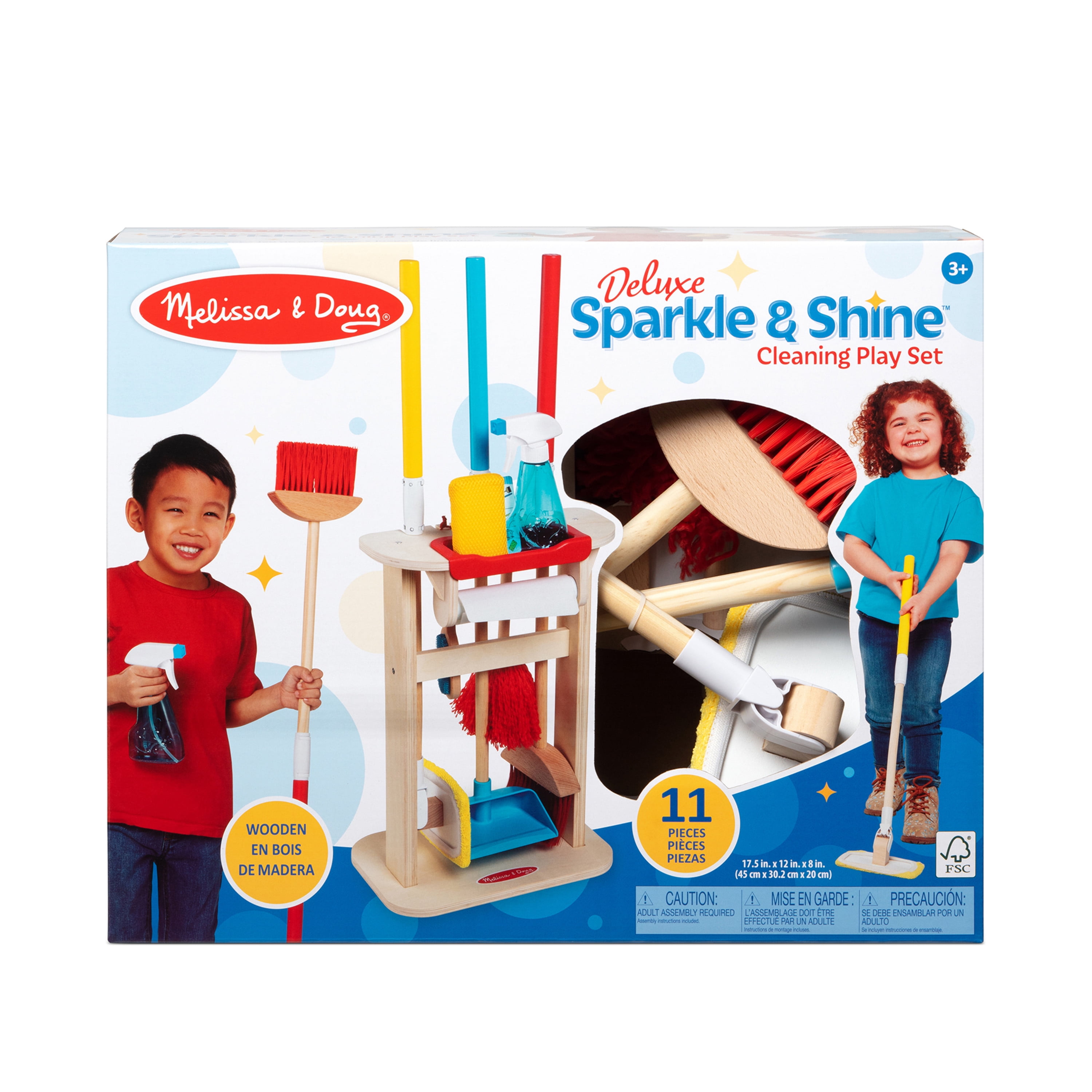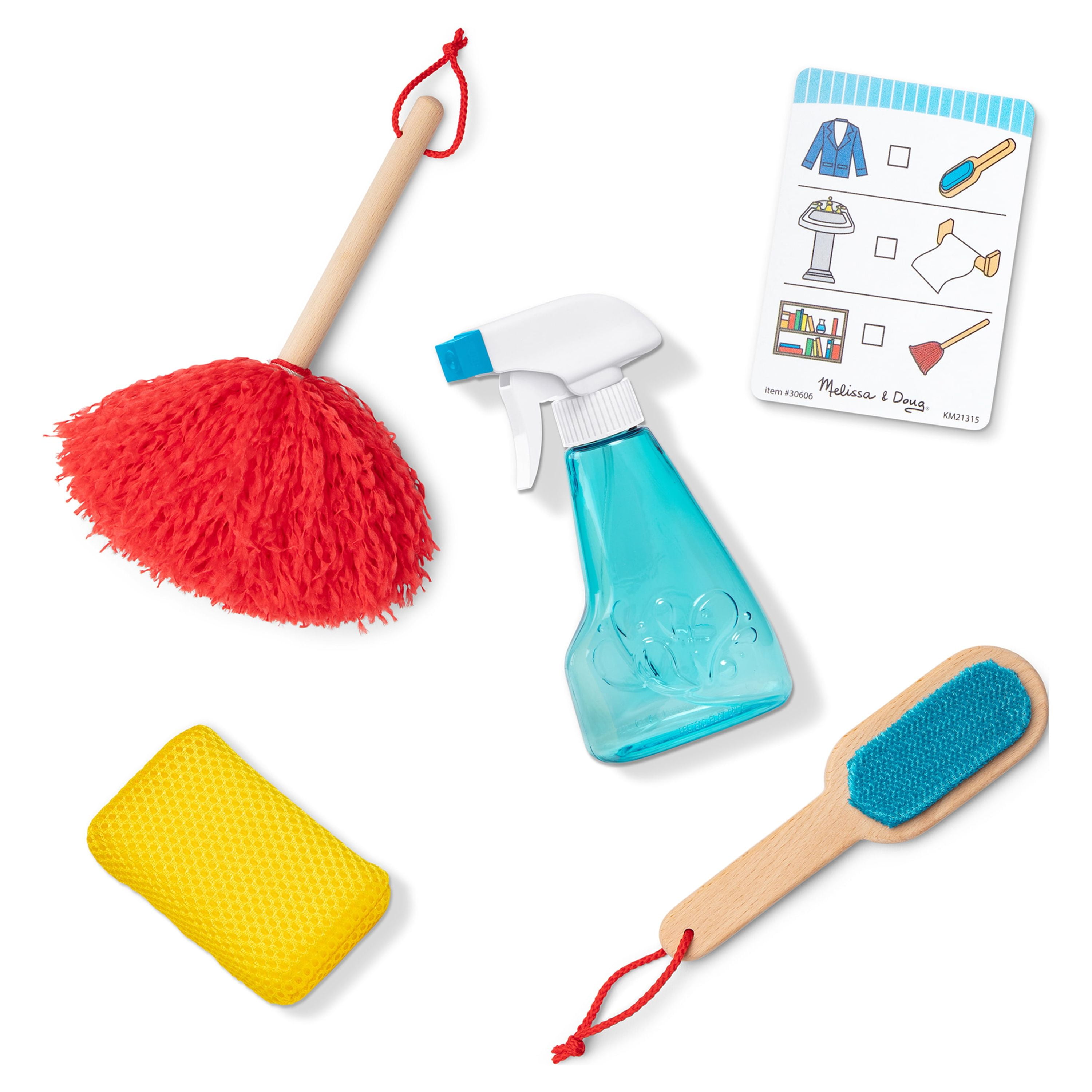 Turn clean-up time into playtime and have good, clean fun with realistic kid-sized cleaning accessories from Melissa & Doug! Make floors sparkle with the wooden long-handled broom, dustpan, and sweeper-mop with removable cleaning cloth. Polish surfaces with a fluffy hand duster, and wipe away grime with a sponge, spray bottle and reusable cloth towel roll attached to the wooden storage stand. Theres even a wooden-handled lint brush to keep clothes and furniture looking tip-top. Kids three and older will love keeping track of their chores on the reusable checklist as they help out around the house! This product is certified by the Forest Stewardship Council. FSC certification ensures that products come from responsibly managed forests that provide environmental, social, and economic benefits, and that forests are protected for future generations. Please note that FSC certification applies to new inventory only (FSC C156584)