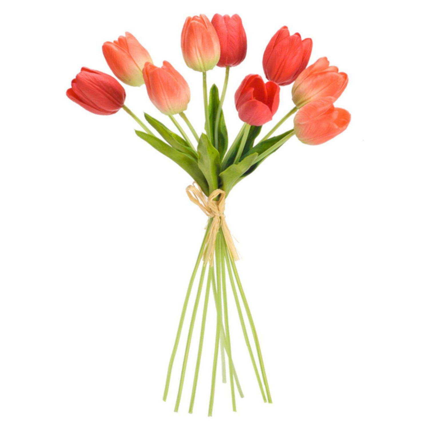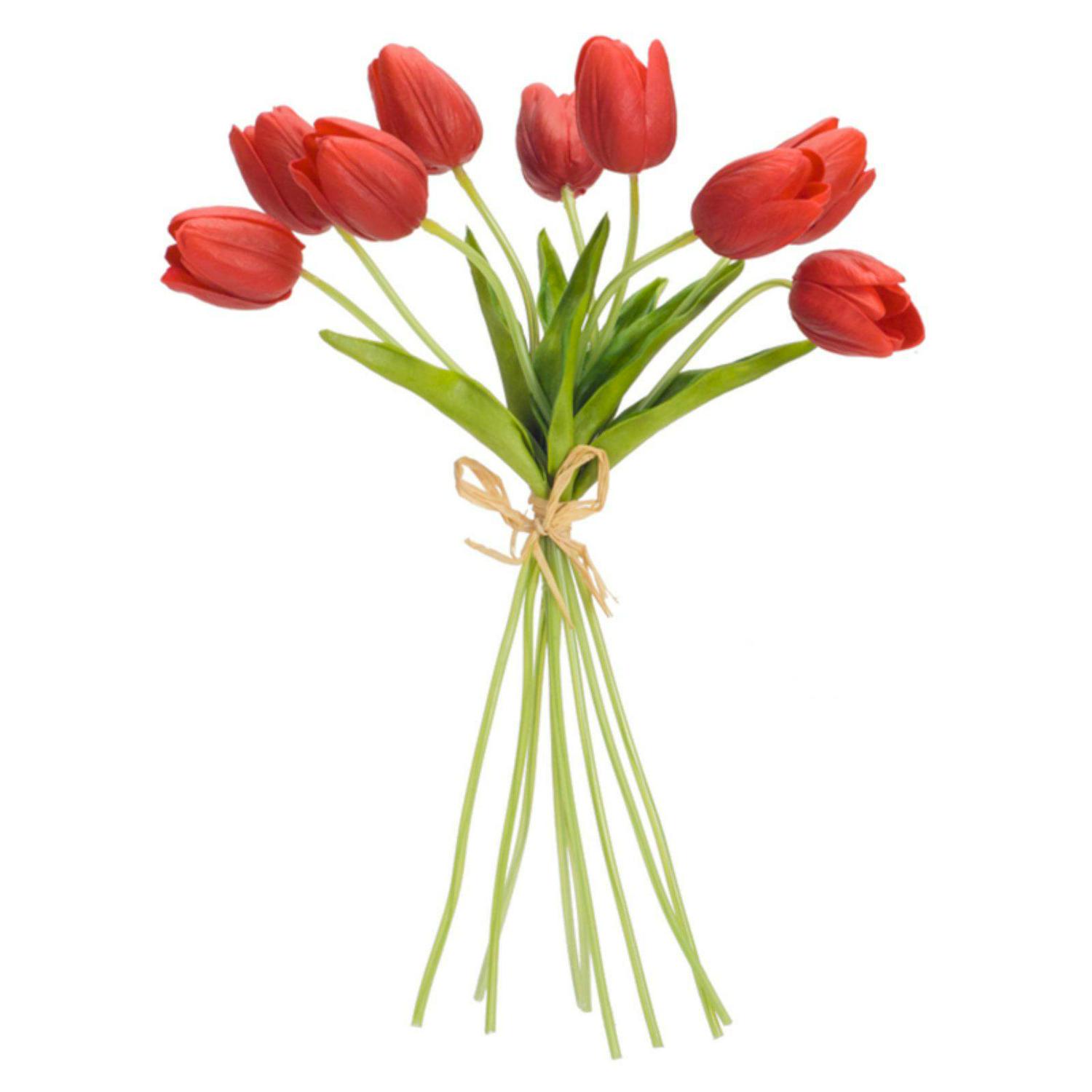 Tulip Bundle 15″H Polyester/Plastic Welcome the spring season with this beautiful set of Tulip Bundles. Featuring six pieces, this set would be a great addition to your spring floral vases or arrangements. The bright red flowers paired with the warm green foliage and twine tie is the perfect combination to create a stunning spring display. The quality plastic flowers are sure to last for seasons to come. Featured in Melrose International’s “Cottage Garden” collection. Measures 7 x 6 x 15 each Primary Materials: Plastic Reccommended for indoor and outdoor covered use only