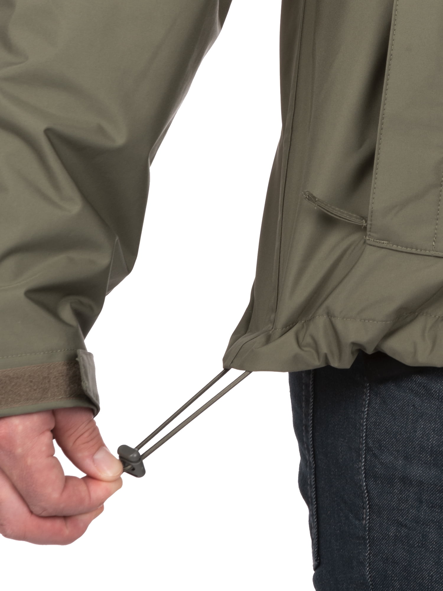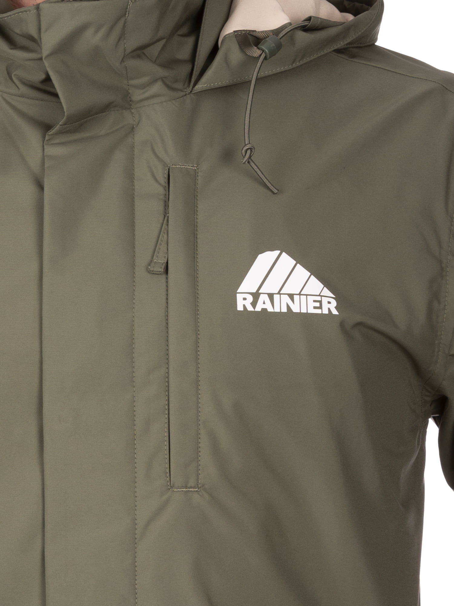 Men’s Rainier Waterproof Breathable Premium Rain Jacket in Cypress, Size 2XL Waterproof and breathable fabric with 5000/5000 MVT rating Water repellent outer shell Adjustable hood that stows into collar Storm guard with button closure Fully taped seams keep water out Ultra soft hand feel Covered zipper side and chest pockets Interior chest pocket Fully lined Machine wash cold, wash separately