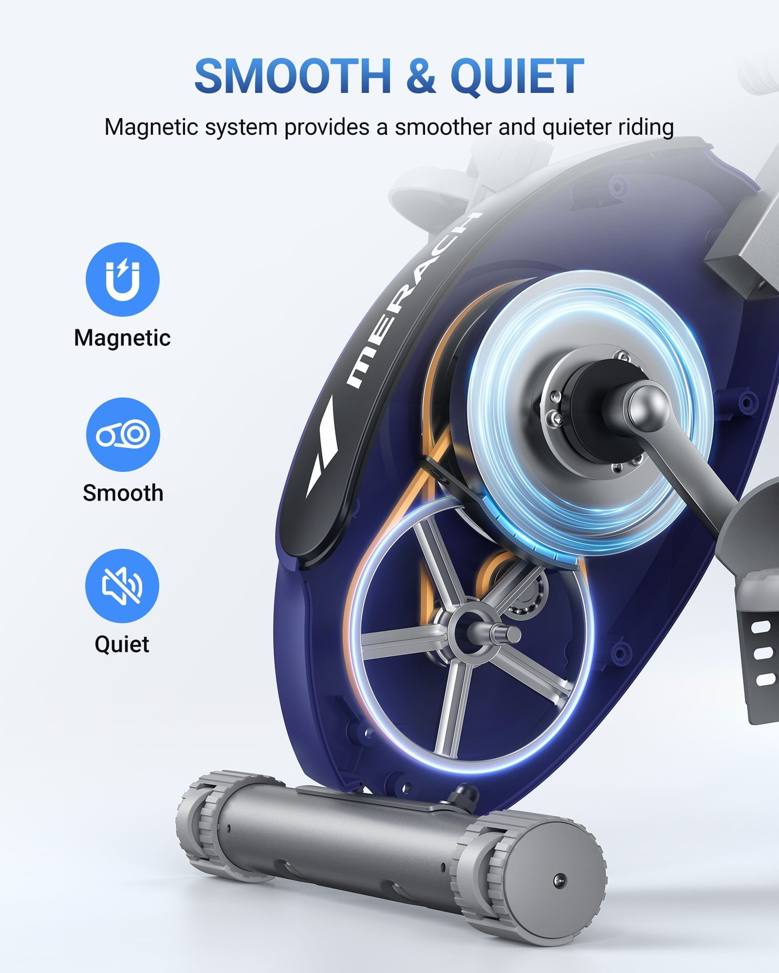 S15 Folding Exercise Upright Bike Information Brand: MERACH Special Feature: Speed, Foldable, Adjustable Seat Color: Blue Power Source: Battery Powered Recommended Uses For Product: Indoor Item Weight: 39.7 Pounds Material: Metal Resistance Mechanism: Magnetic Number of Resistance Levels: 16 Drive System: Belt Product Dimensions: 37.4″D x 20.9″W x 45.7″H Maximum Weight Recommendation: 300 Pounds Item Package Dimensions: 46 x 16.5 x 9.5 inches Provides a stable riding experience. This foldable exercise bike is made of high-quality steel and supports a maximum weight of 300 pounds. It features an adjustable seat suitable for heights ranging from 4’4″ to 6’6″. With dimensions of 37.4″L x 20.9″W x 45.7″H and a seat cushion measuring 9.05″L x 11.02″W x 2.36″H, it weighs 39.7 lbs and ensures a stable riding experience. Versatile Full Body Workout Bike The MERACH 4-in-1 folding indoor cycling bike offers a compact and versatile fitness solution. With its different handles, you can easily switch between upright and recumbent bike modes. Enhance your workout routine by incorporating resistance bands for effective arm and back exercises. Smooth and Quiet 16-Level Resistance: Activate your joints and maintain vitality with the S15 Bike’s 16 levels of low-impact smooth resistance. Experience an unbeatable combination of smoothness and quietness, enabling you to concentrate on your fitness without distractions. Free MERACH APP Support Elevate your fitness journey with our convenient MERACH app. Connect via Bluetooth and effortlessly record your exercise data in real time. Stay motivated and surpass your fitness goals like never before. It also offers a wide range of workout options for added variety. LCD Monitor Display Keep track of your progress with MERACH’s LCD monitor display. Our folding bike is equipped with an electronic display that shows key metrics like time, distance, speed, calories, and heart rate. And with the iPad holder, you can easily stream your favorite fitness videos or get some extra action guidance. Easy Mobility and Storage Experience effortless mobility and storage with the MERACH Stationary Exercise Bike. Its foldable design and built-in mobility wheels allow for easy transportation and storage. With its compact footprint, it won’t occupy excessive space in your home gym, apartment, or house, making it convenient to store and use whenever you desire. Convenient Bottle Holder Stay hydrated without interrupting your workout with the customized bottle holder on the MERACH folding exercise bike. Positioned conveniently behind the seat, it provides easy access to your water bottle during your exercise sessions. Worry-free Guarantee At MERACH, we believe in providing worry-free fitness solutions to our customers. That’s why all of our products come with a one-year manufacturer’s warranty, giving you peace of mind and assurance. If you encounter any quality issues that are our responsibility, our team is always available to assist you promptly. We are committed to delivering reliable, user-friendly, and safe products that exceed your expectations.