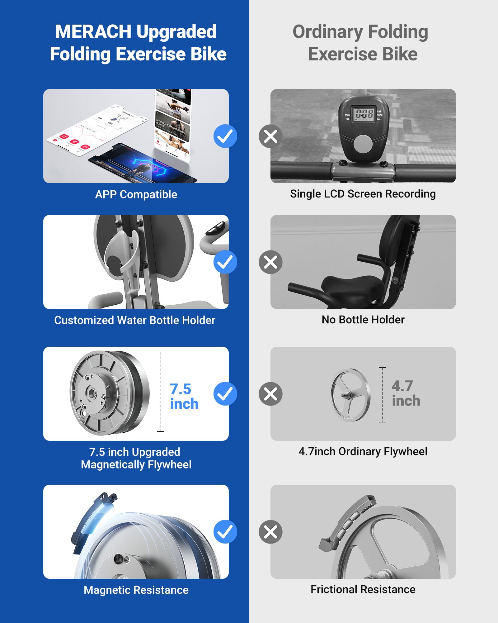 Home / Sports & Outdoors / MERACH Folding Exercise Bike, 4 in 1 Magnetic Upright Bike with 16 Levels of Resistance for Home Indoor Cardio Workout Max Weight 300 lbs