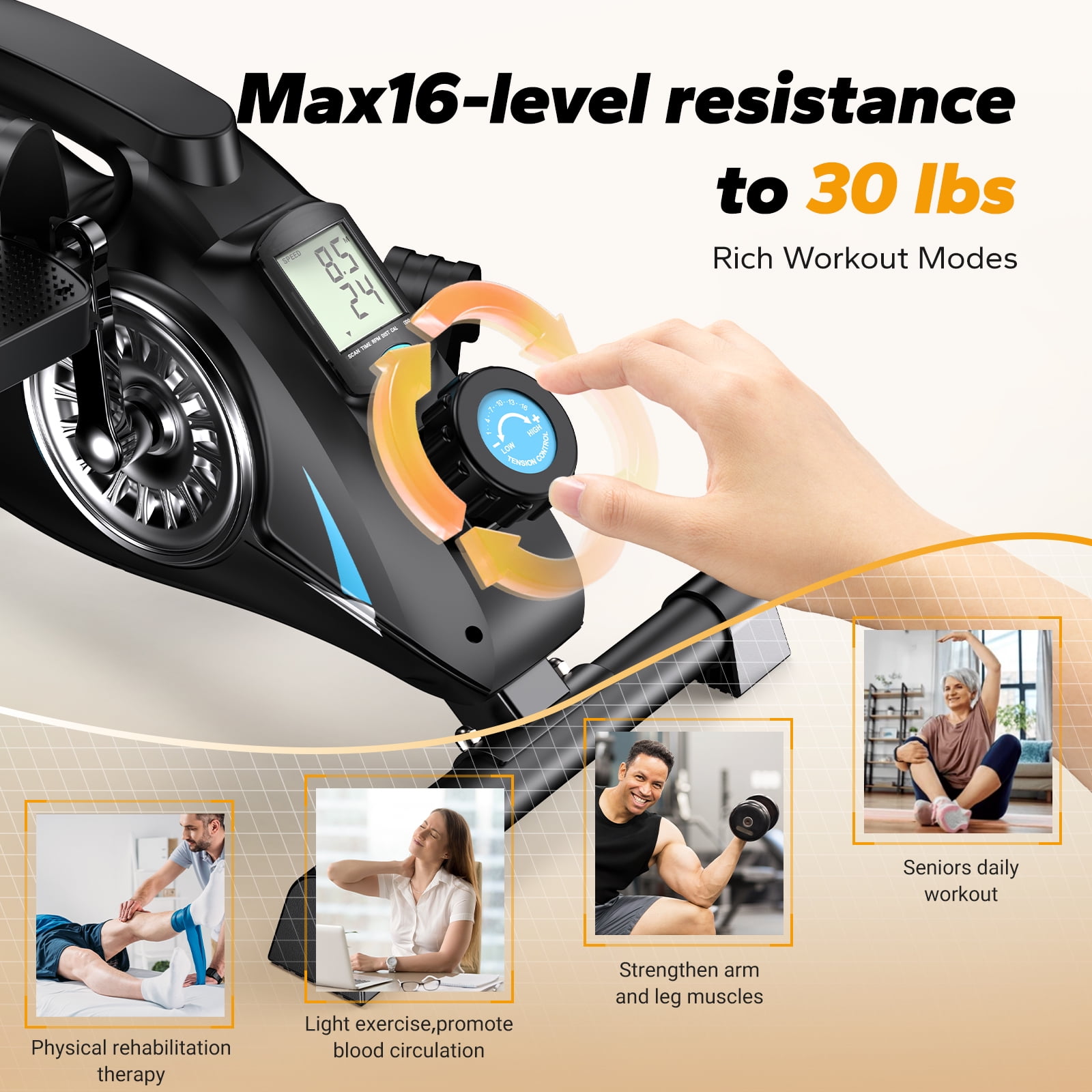 The MERACH S04 under desk bike is the ideal solution for busy individuals seeking to stay active and healthy. With 16 levels of smooth resistance, it offers customizable workout intensity. The included floor mat ensures stability and protects your floors. Plus, the additional resistance band allows for simultaneous arm exercises. Stay productive and maintain a healthy lifestyle by using the MERACH S04 Mini Trainer Bikes while working, studying, or watching TV.