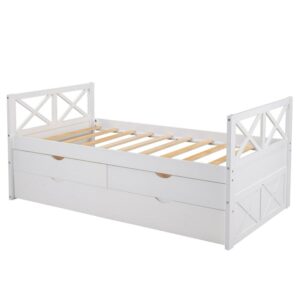 Merax Solid Wood Captain Bed with Trundle and Drawers, Twin, Multiple Colors