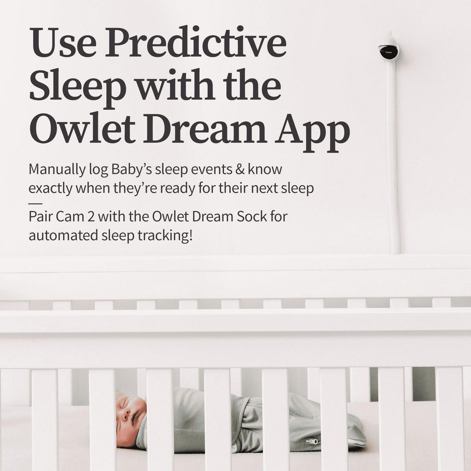 – Use Predictive Sleep with the Dream App. Manually log your baby s sleep events in the Owlet Dream App and know exactly when Baby is ready for their next sleep with our new Predictive Sleep Technology. (Pair Cam 2 with the Owlet Dream Sock Baby Monitor for automated sleep tracking!)