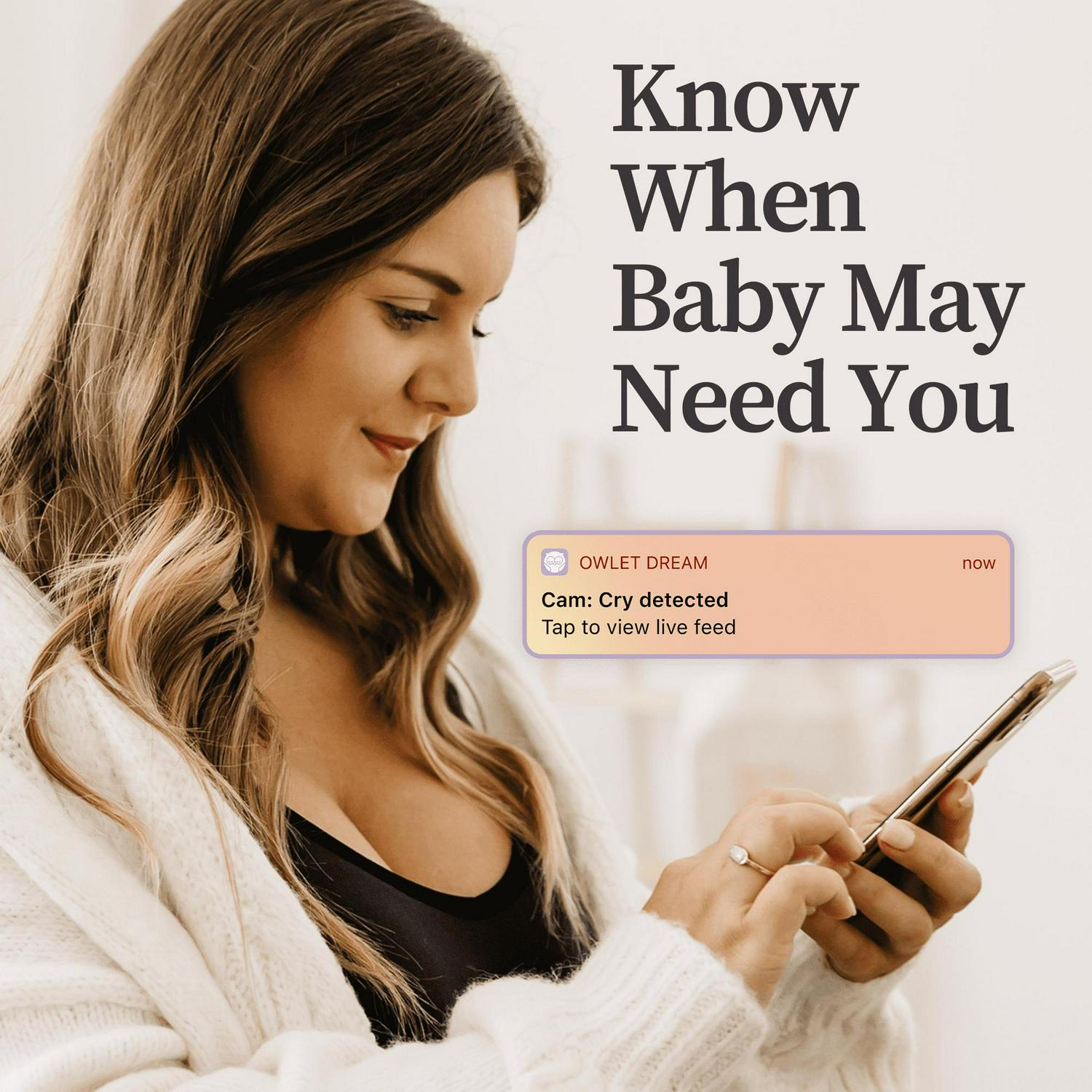 Gain additional visibility around why Baby is upset: the Owlet Cam 2 features video clips when sound, motion, or crying notifications are detected in Baby’s room. These video clips allow you to watch Baby s cues that would have previously gone unnoticed from the next room. Learn subtle cues that Baby shows before they start to cry, so you know exactly why they re crying, and how you can best soothe them. Manually log your baby s sleep events in the Owlet Dream App and know exactly when Baby is ready for their next sleep with our new Predictive Sleep Technology. Pair Cam 2 with the Owlet Dream Sock Baby Monitor for automated sleep tracking!