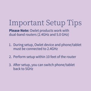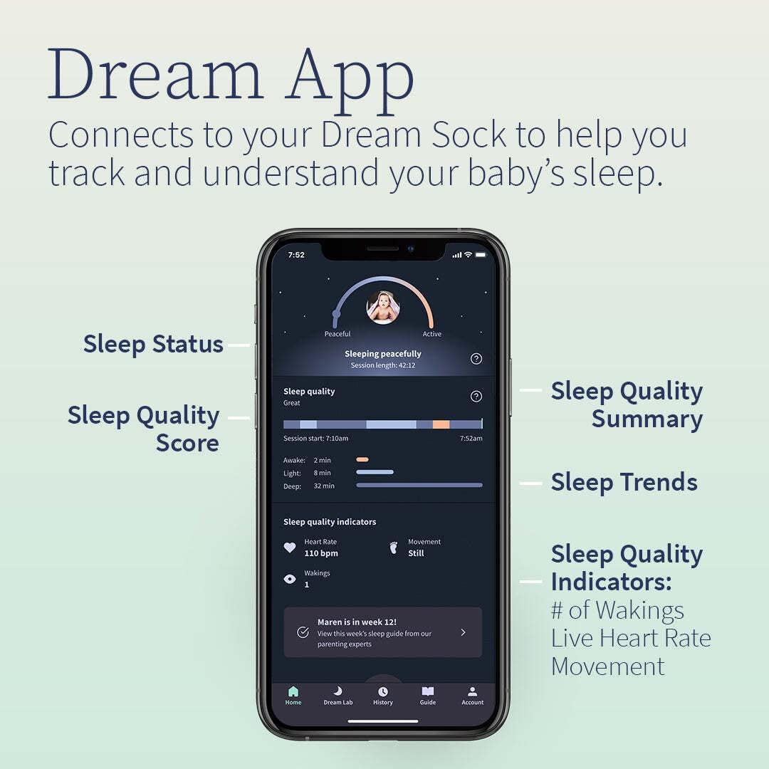 Track your baby s sleep trends. The Dream Sock is worn for every nap and bedtime and uses trusted technology to track your baby s sleep, including wakings, heart rate, sleep quality, and total hours slept.,Receive a personalized sleep program. From months old, access Owlet s award-winning sleep program. Take an assessment, choose from 3 proven methods, and receive an adaptable sleep schedule tailored to your baby s needs. See better sleep in as few as 7 days.,Review how long & how well Baby slept. See a breakdown of each of your baby s sleep sessions and spot patterns that can help you make changes to your baby s schedule as they grow,Connects to Devices on 2.4 GHz – For setup, both your Owlet device and phone or tablet need to be connected to 2.4 GHz. Perform set up within 10 feet of your router. After setup, you may move your phone or tablet back to 5 GHz.,Use sleep data & expert tips for better sleep. View your baby s sleep data and helpful sleep tips from Owlet sleep experts to support your baby as they learn to embrace sleep and develop life-long healthy sleep habits.