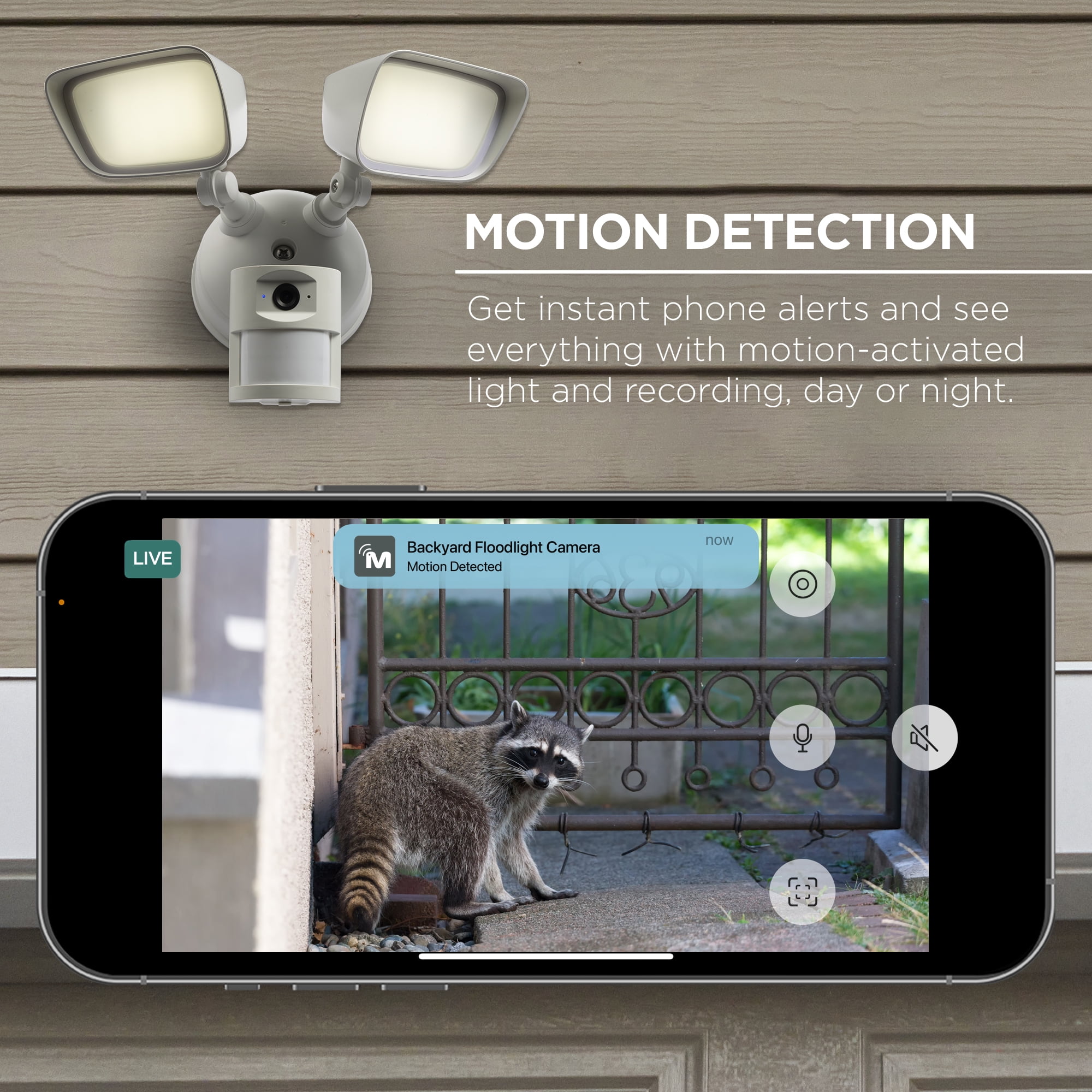 Merkury Floodlight Camera, Smart Wi-Fi, 1800 Lumens, Motion Alerts, (1-Pack)