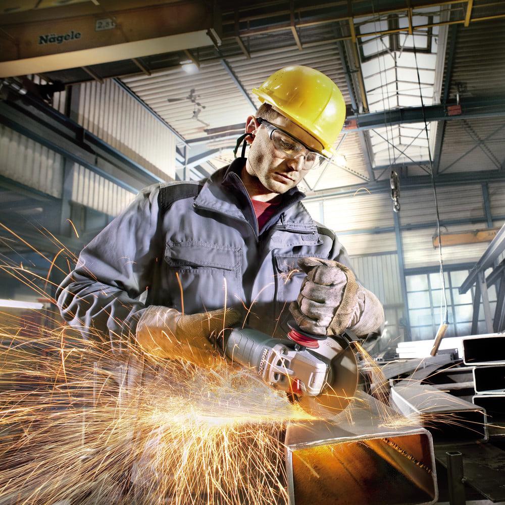 Engineered for heavy duty grinding and cutting, the 5 WEP15-150 Quick compact angle grinder uses a powerful LongLife 13.5 Amp, 9,600 rpm motor that includes advanced designs to optimize air flow for cooler operation and extend longevity in harsh environments. A Quick change wheel system allows the fastest wheel changes available. The anti-vibration side handle reduces vibration for improved comfort and the S-Automatic Safety Slip Clutch boosts safety by helping to prevent kick back if a disc or wheel should jam. Electronic features include speed stabilization for highest productivity, overload protection, power interruption protection and soft start.