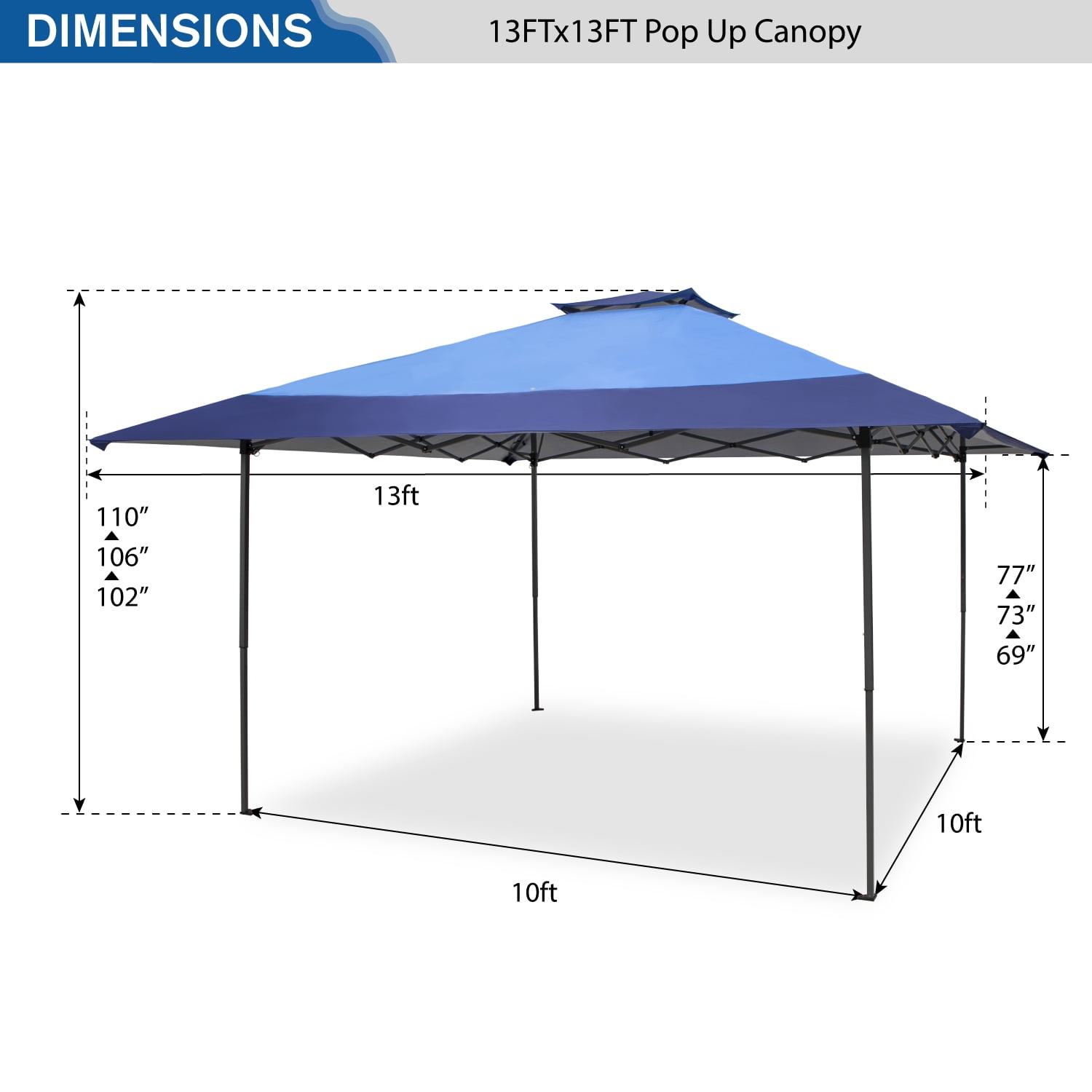 MF Studio 13’ x 13’ Outdoor Patio Pop-up Canopy Tent Gazebo Shelter with Wheeled Bag, Blue
